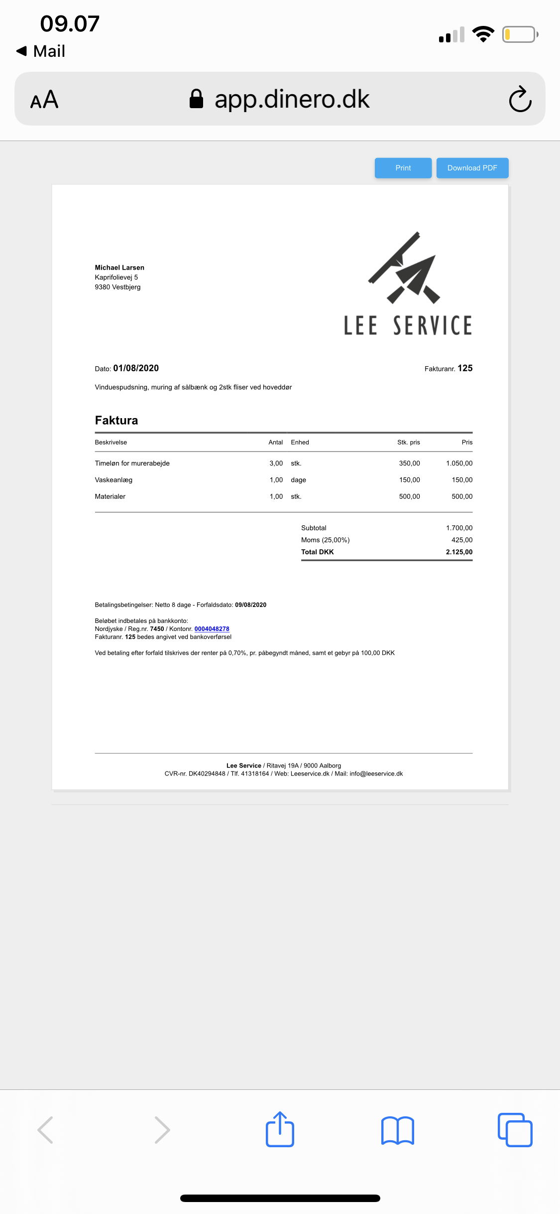 Vi havde en rigtig god oplevelse med Lee service. Alex svarer hurtigt på spørgsmål og overholder aftalerne - samtidig er han en rar mand. Vi har intet at sætte på arbejdet og kan derfor kun anbefale andre at bruge firmaet.