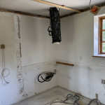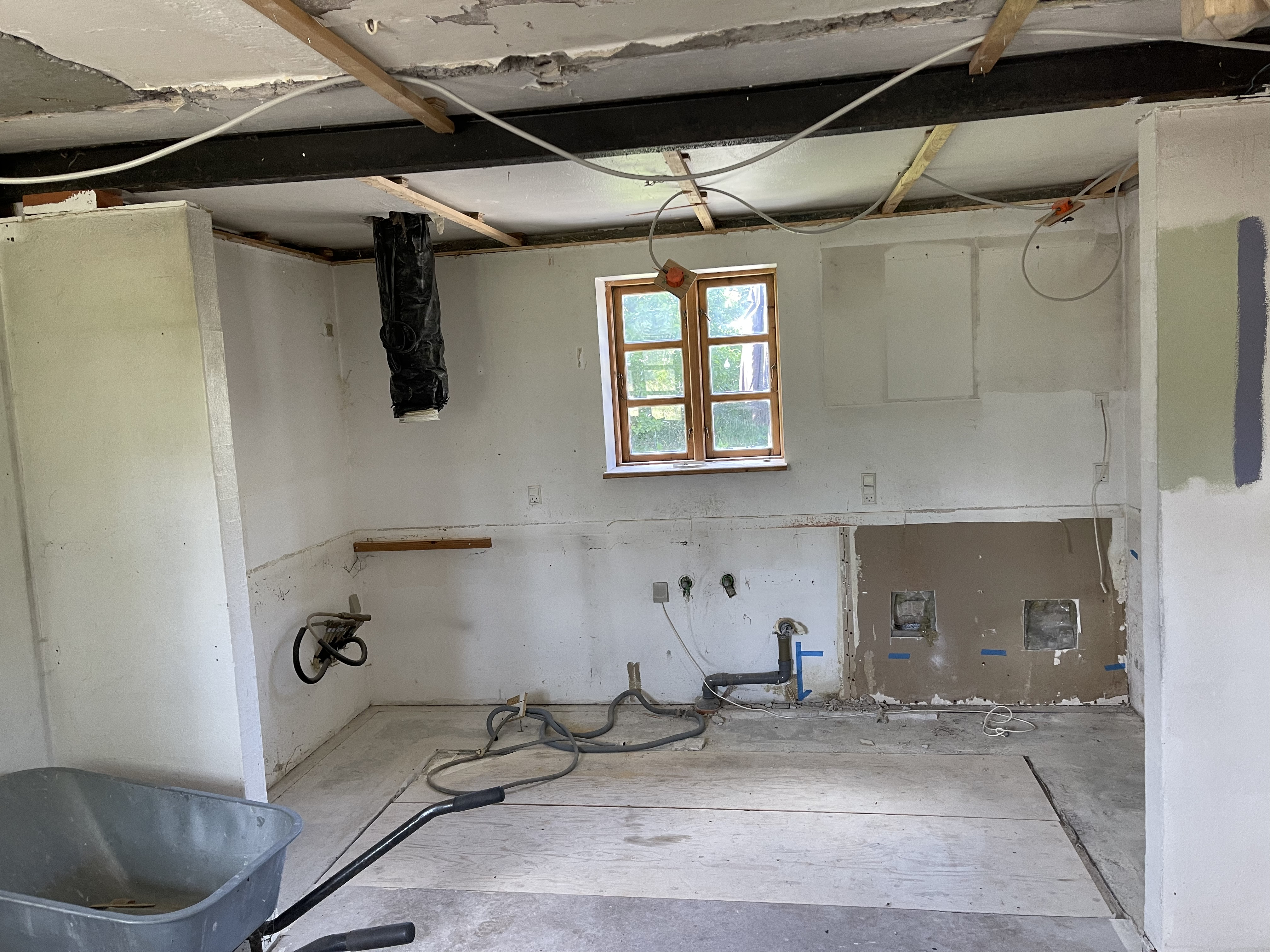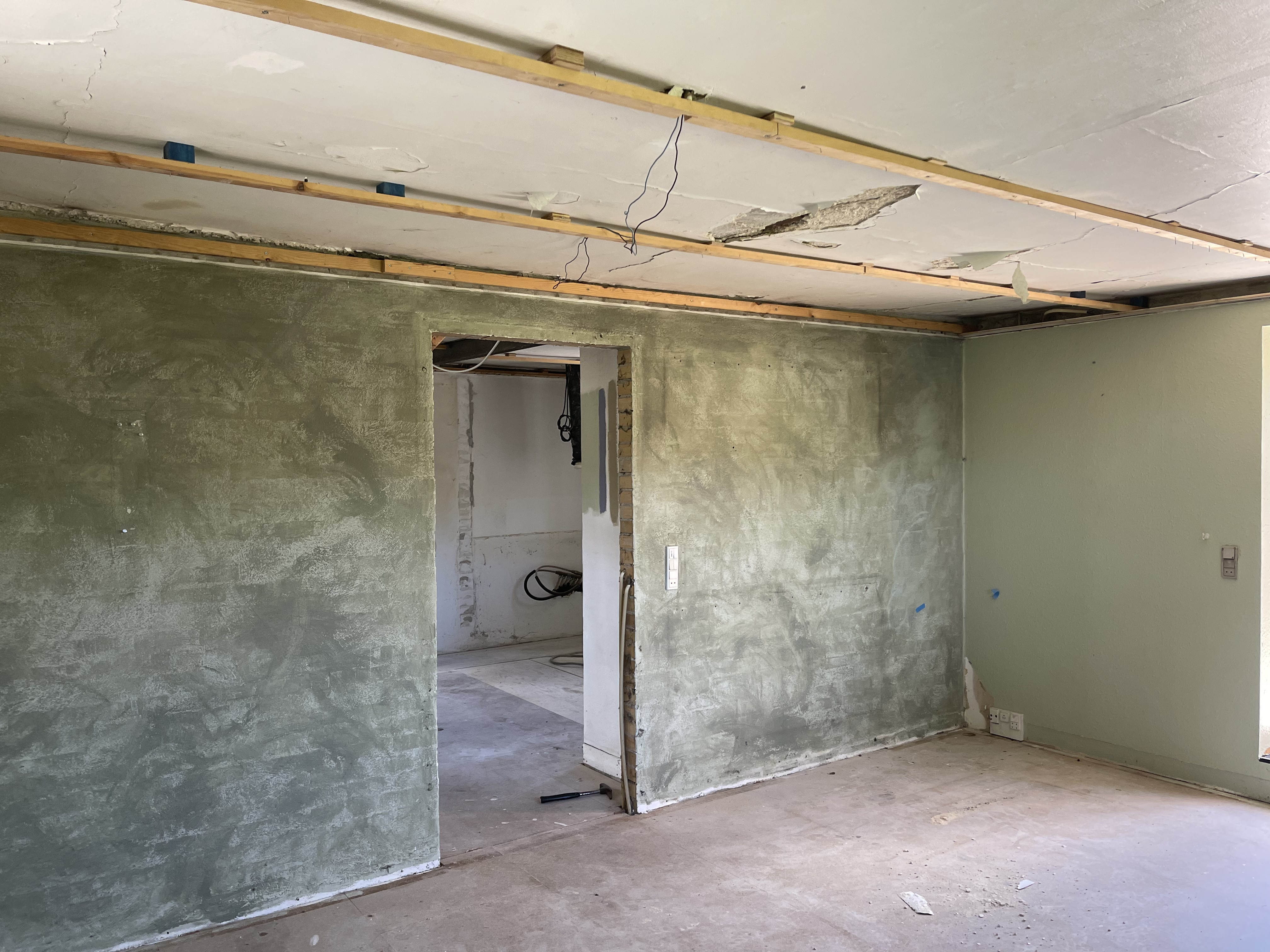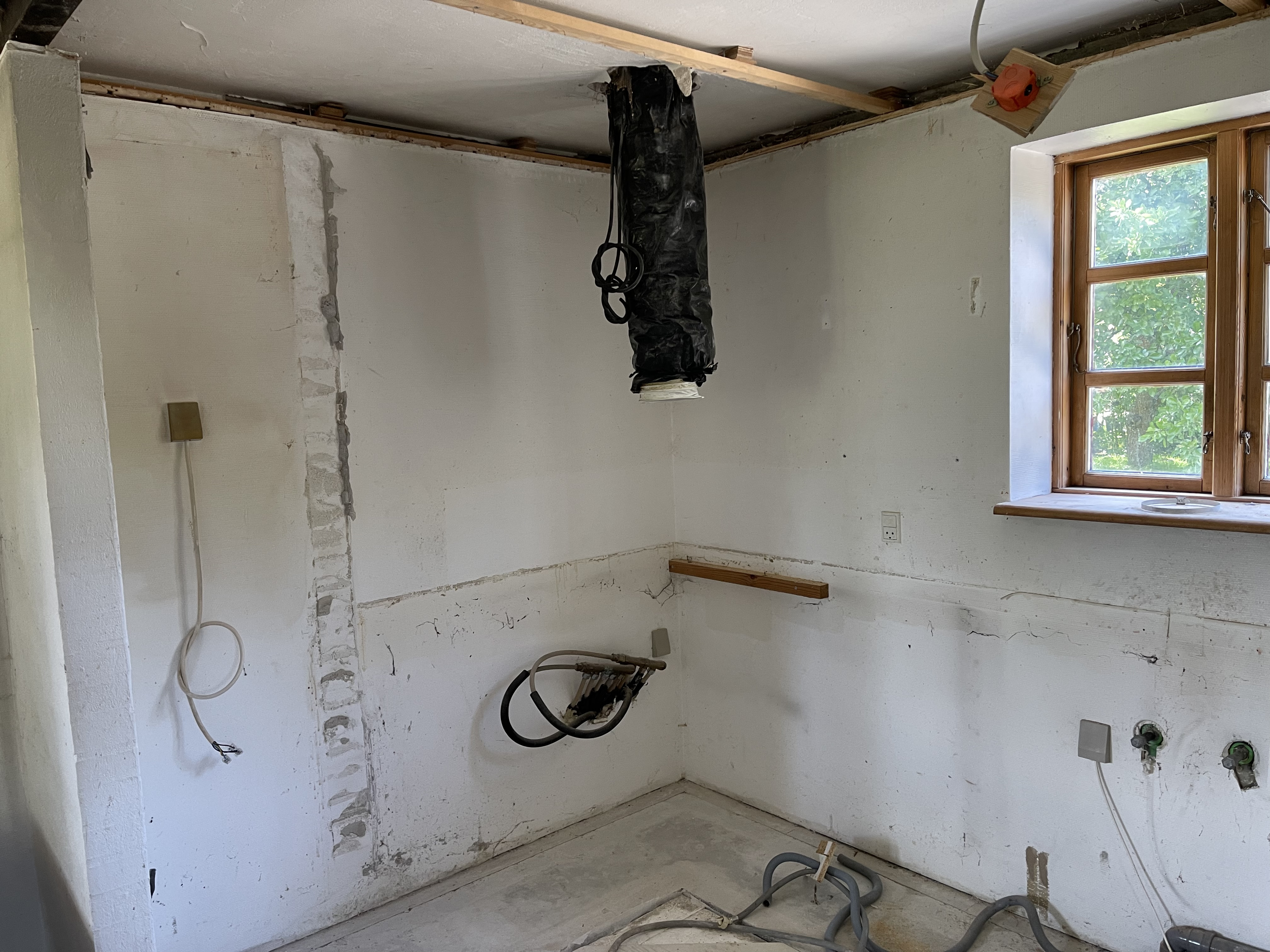 Konklusion; vi har ingen køkken, stue, gulve, eller lofter… kun nedfald fra loftet efter han har fjernet soldater der understøttede loft.
