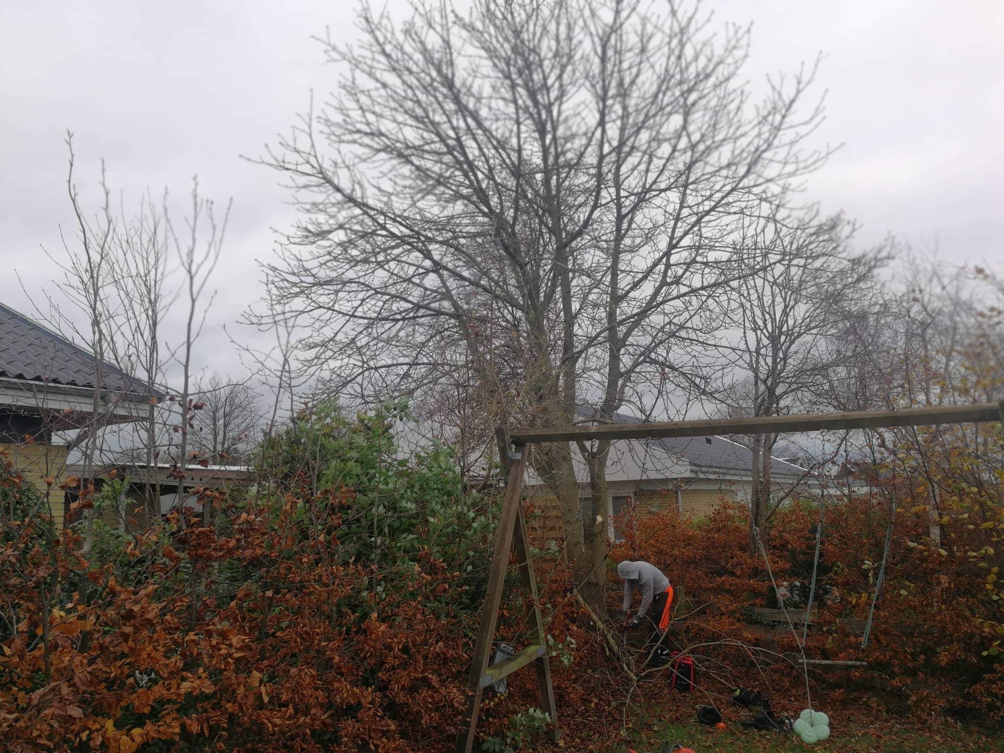 Træet er skåret ned, som aftalt, uden skader på noget. Der var ryddet så pænt op, at jeg ikke lagde mærke til at arbejdet var udført.