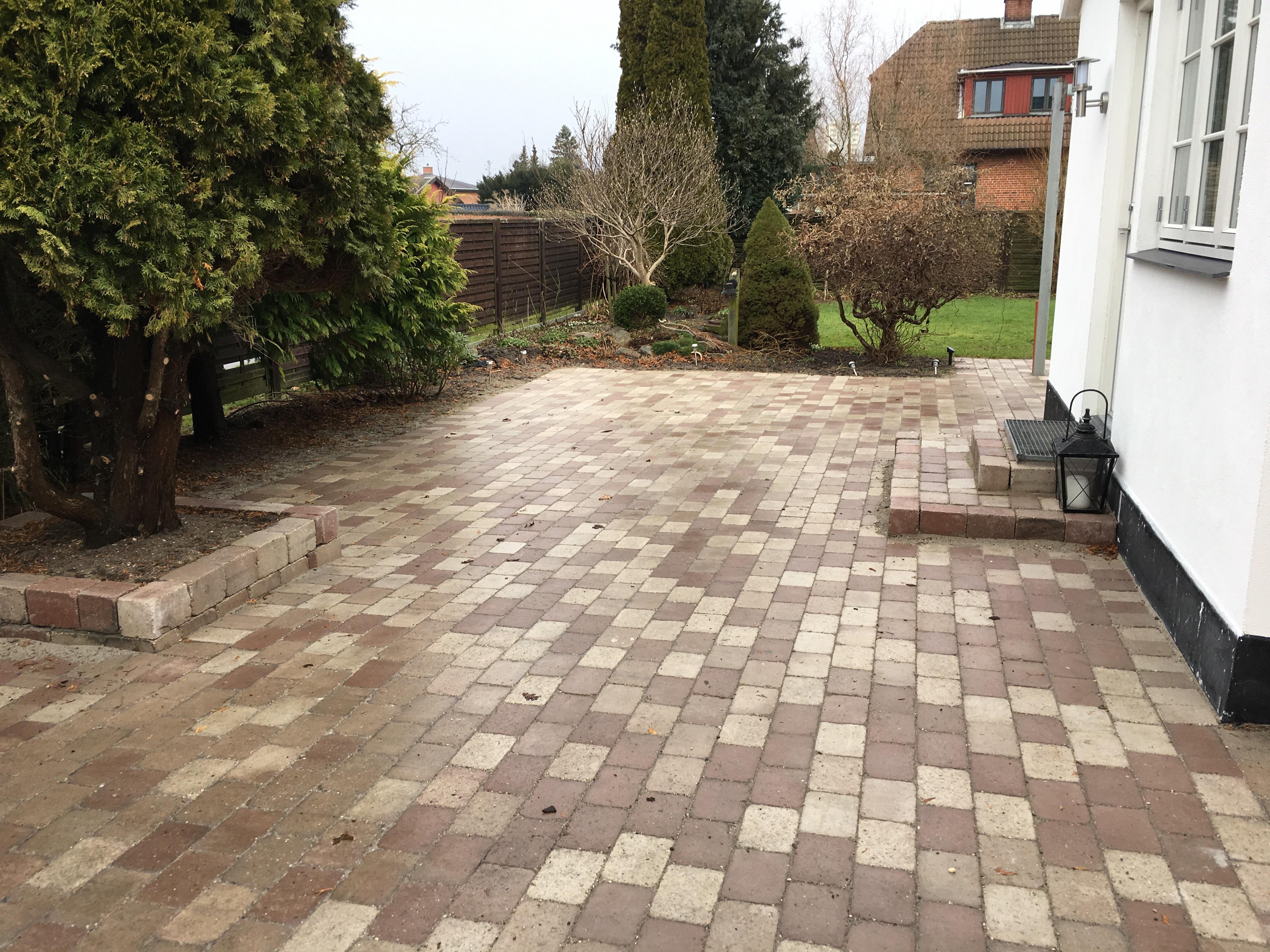 Vi har fået lavet indkørsel, to terrasser, gangsti og carport. Super