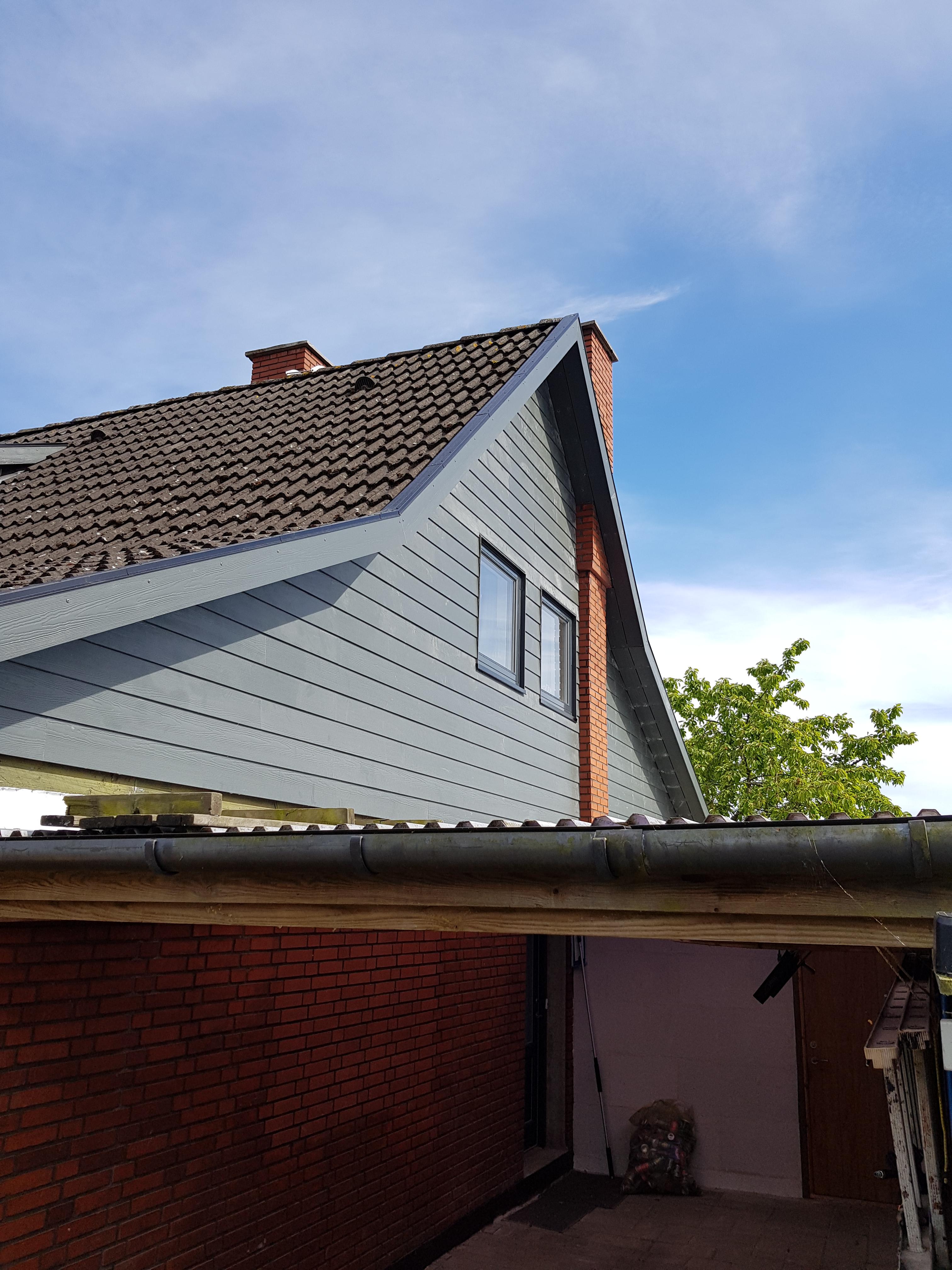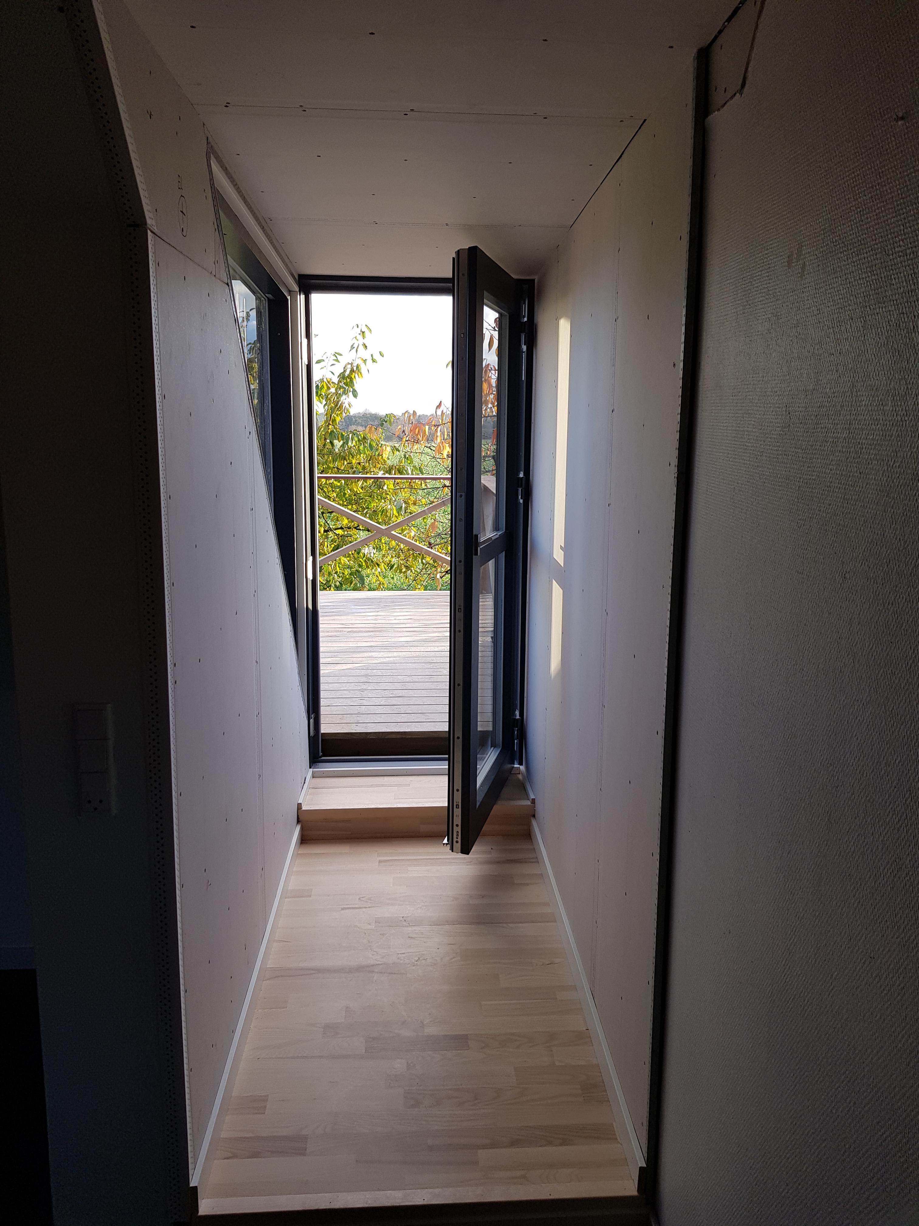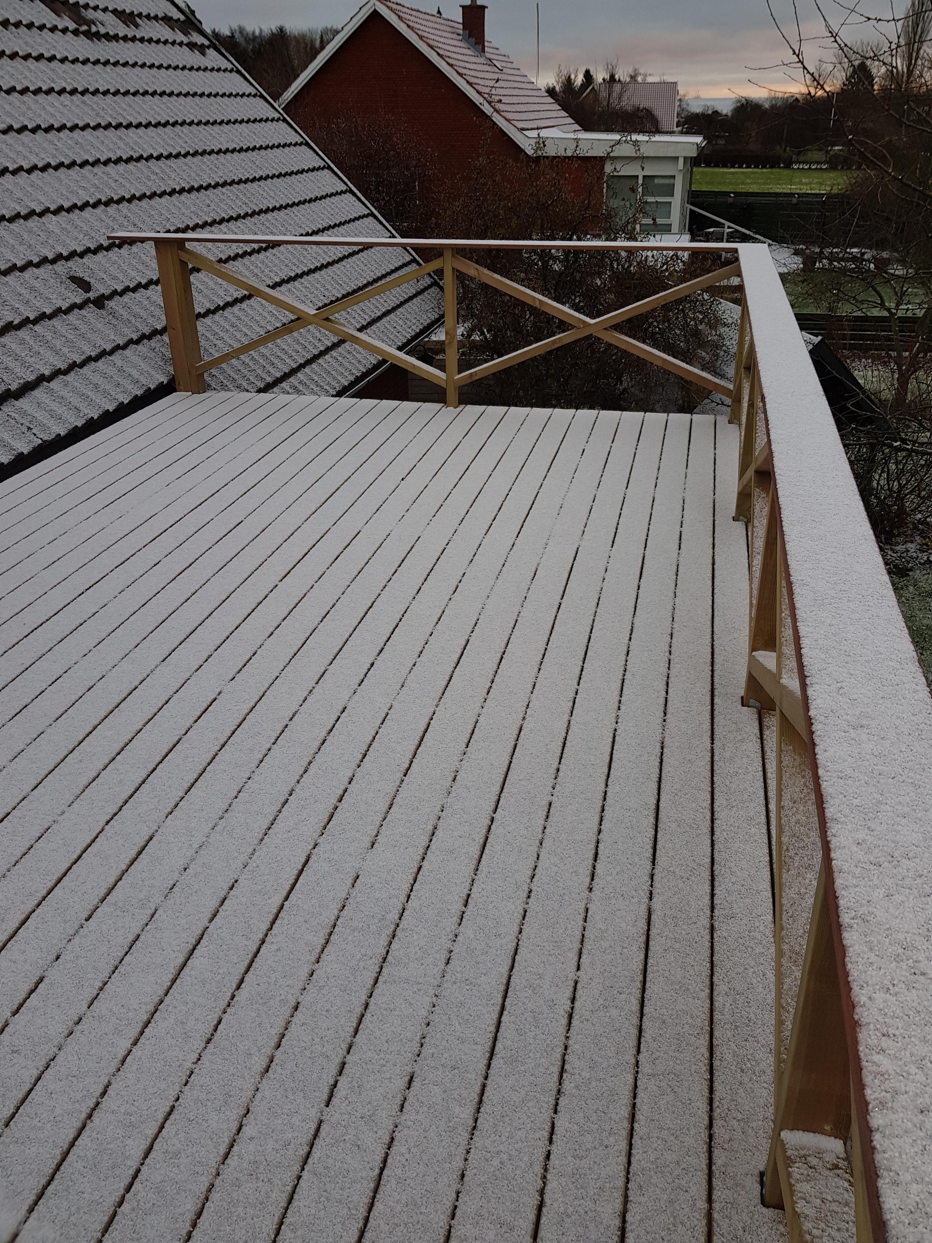Ny oprettet tagterrasse med rækværk som er delvist færdiggjort.