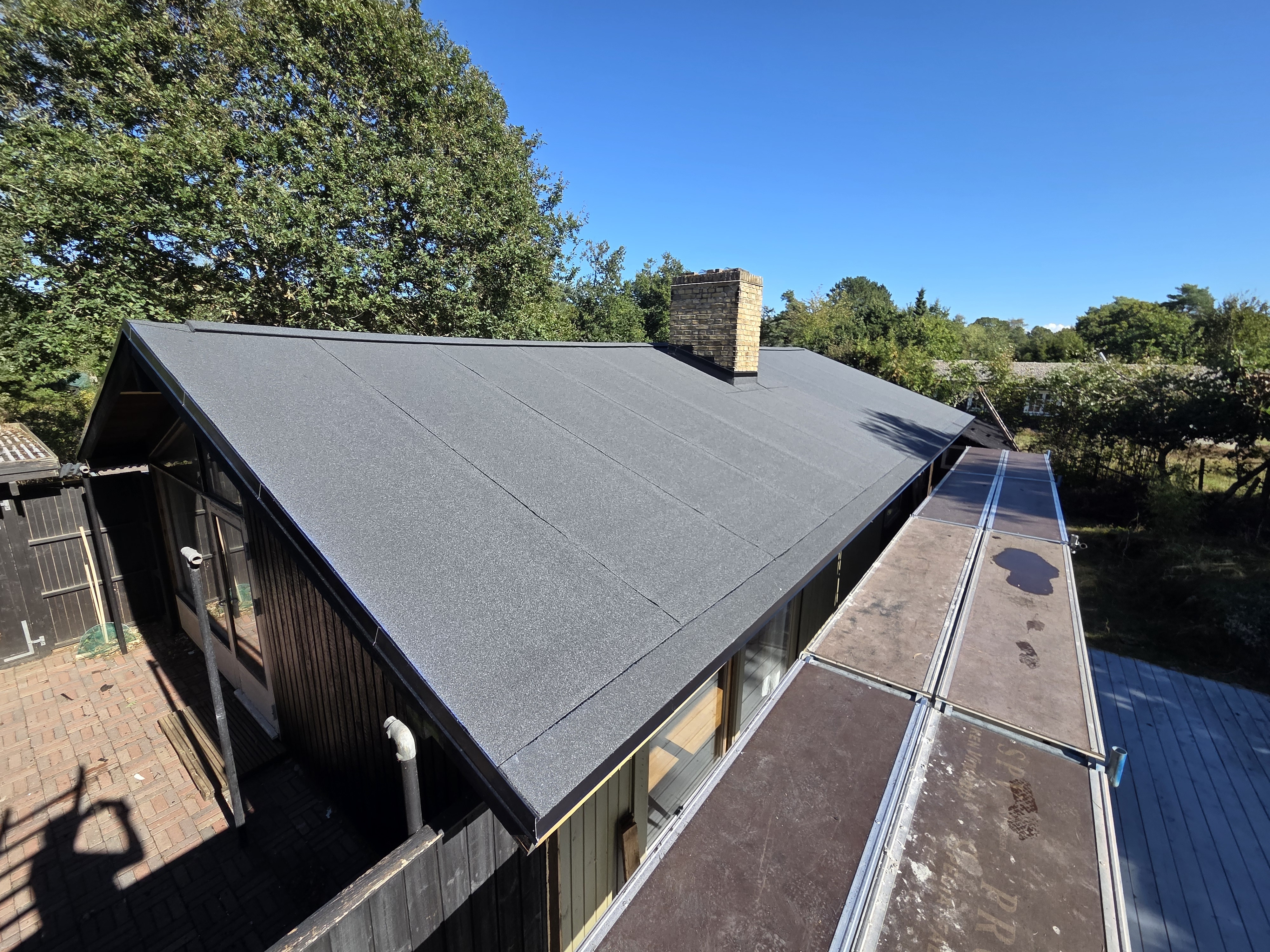 Super professionel kommunikation og udførsel af udskiftning af eksisterende tagpap på sommerhus.