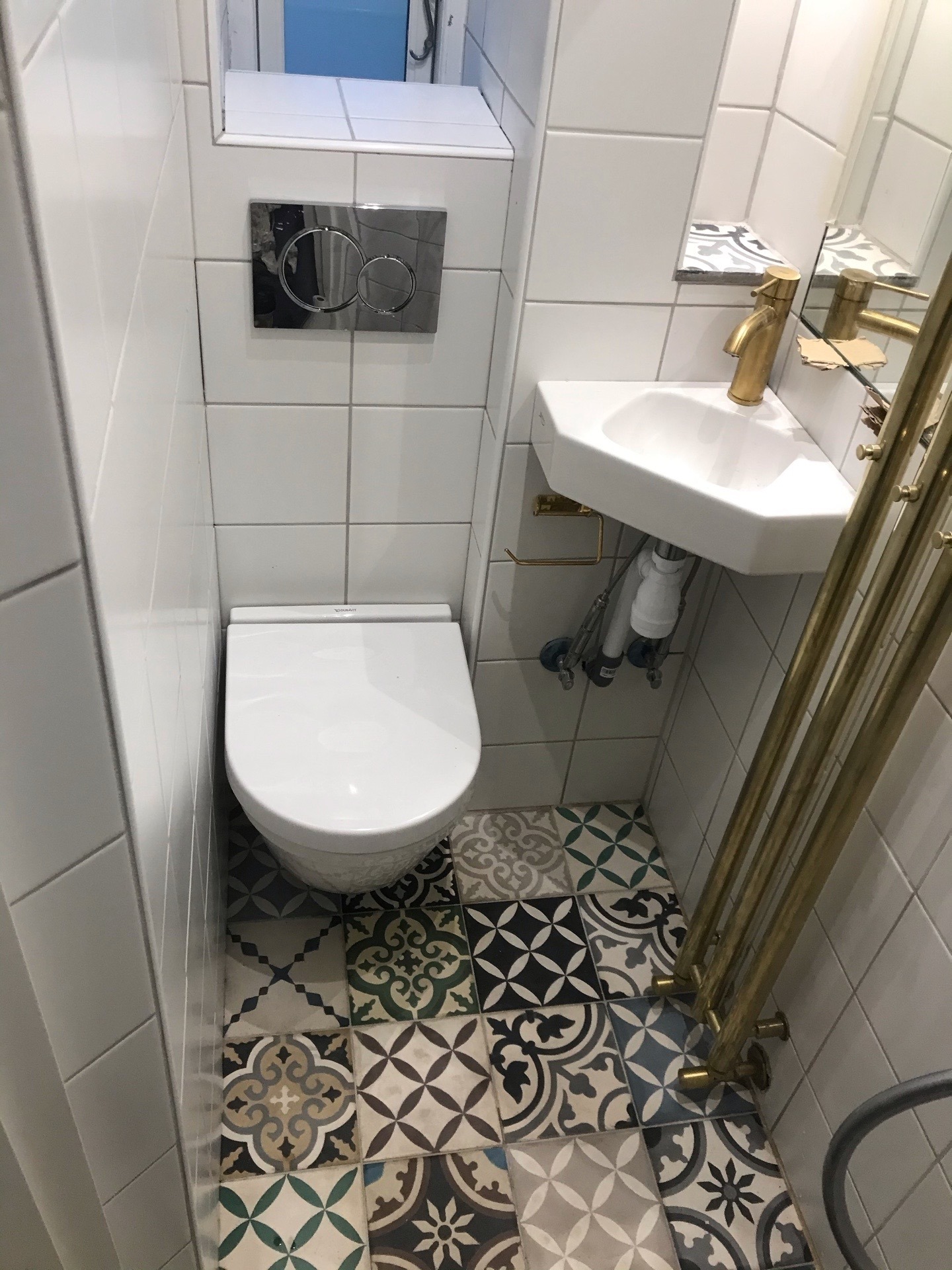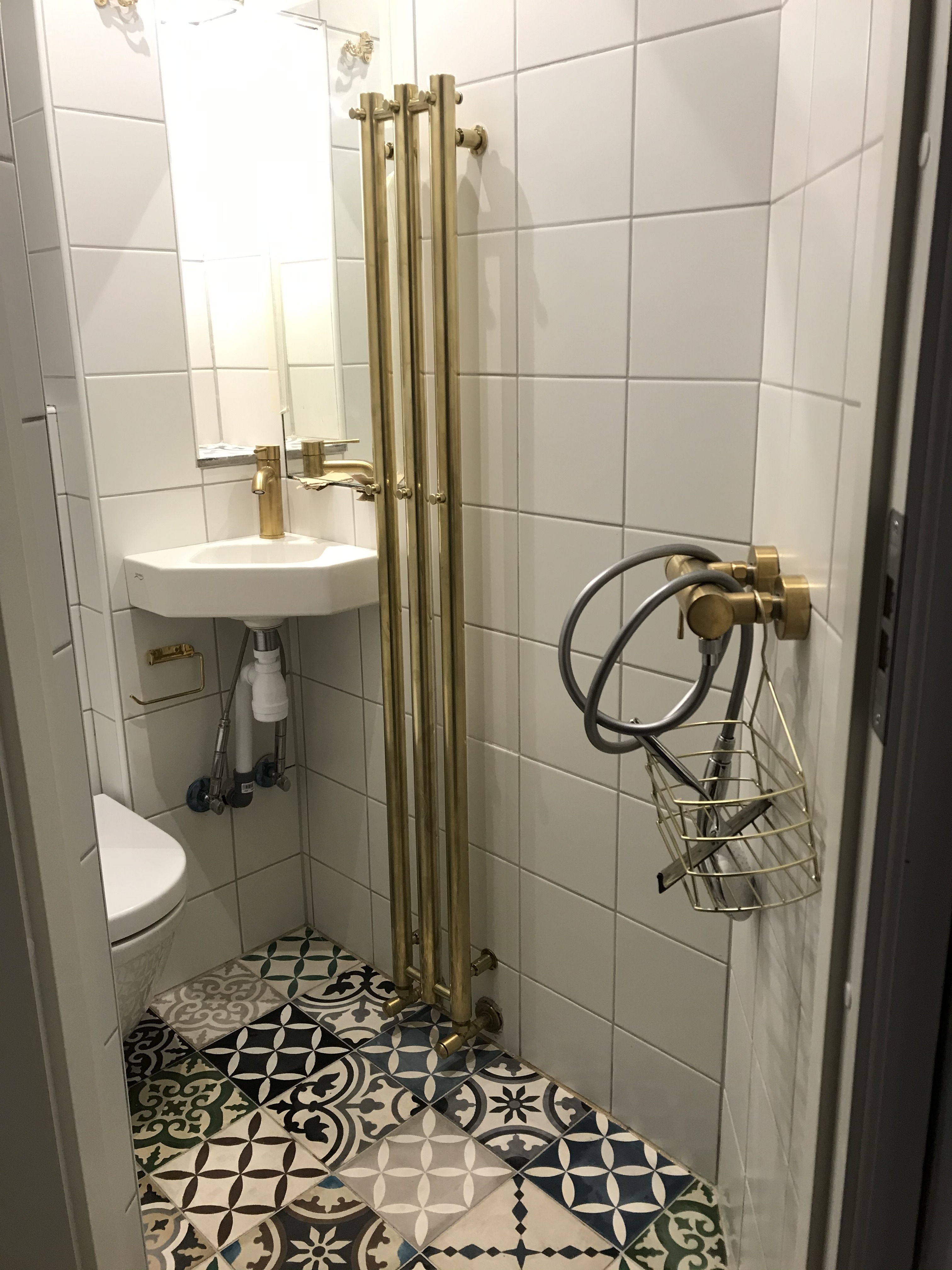 Vi bestemt glade for udfaldet, Meget lille badeværelse men nu med sin helt egen charme. rigtig fin løsning :)