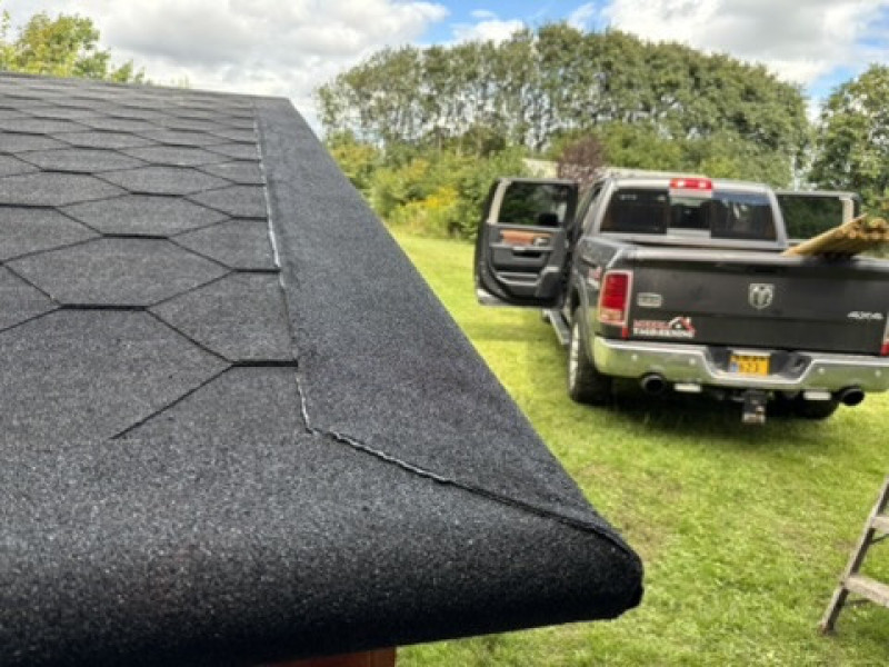 Mikkel skal have ros for på meget kort tid, at finde tid i kalenderen, til at lave tagpap på denne garage. Mikkel trådte hurtigt til og hjalp med løsninger om hvordan situationen skulle gribes an. Ligeledes skal Mikkels folk have stor ros for det arbejde der er blevet udført. Det er rigtig flot arbejde!
