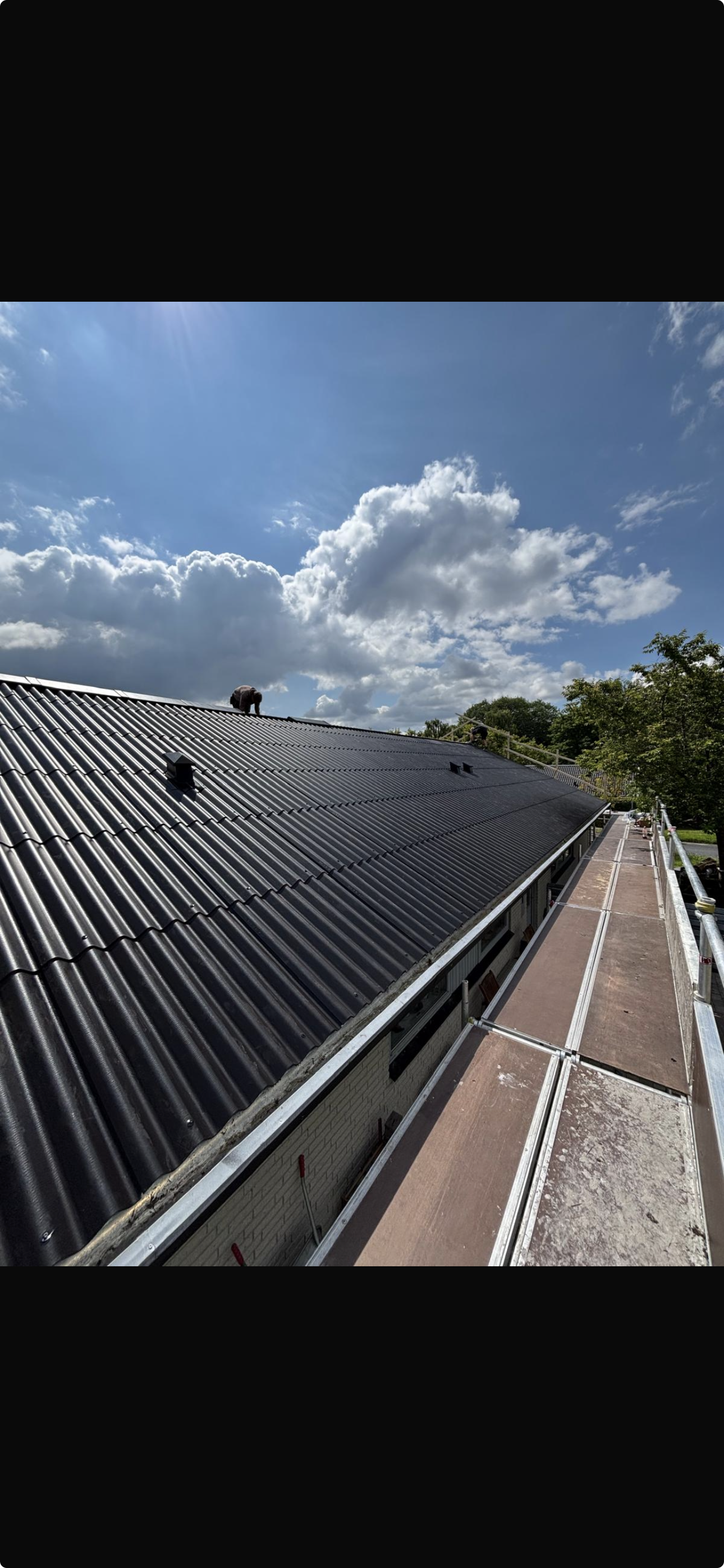 Vi fik skiftet vores gamle asbest tag ud med nye asbestfri bølgeplader. Da jeg selv er i branchen, men ikke er certificeret til at håndtere asbest, og er specialiseret i tagpap, havde jeg brug for en hjælpende hånd. Med mit kendskab til branchen, er jeg nok lidt for kritisk, når det kommer til at hyre en håndværker, og i sidste ende mener at kunne gøre det bedre selv. Da jeg fik fat i Nicolej fra vores tag, gik snakken godt uden alt muligt ligegyldigt pis, og ret hurtigt havde vi en aftale. De var hurtigt i gang og hurtigt færdige til aftalt pris uden alle mulige ekstraregninger, som vi skulle kæmpe om.