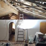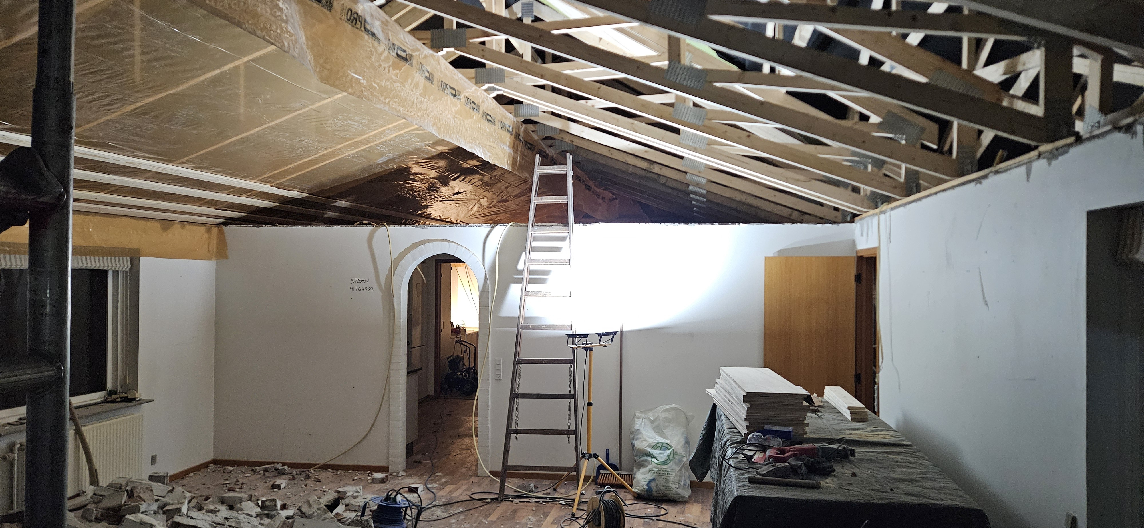 Første dag kom 2 mand og vaskede taget af, inden de gik i gang blev det for en sikkerheds skyld afdækket med plastik på de ting vi havde stående på loftet.