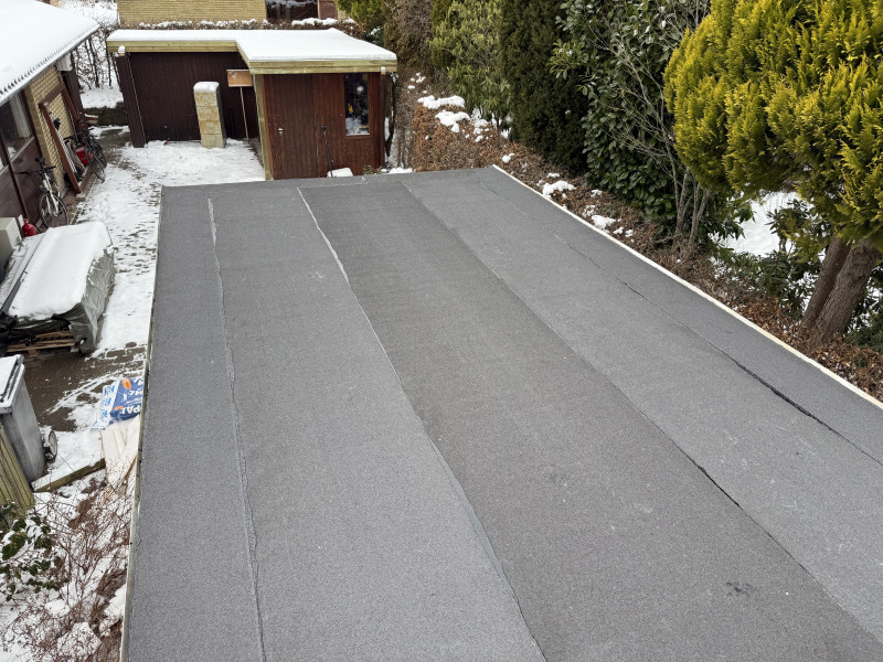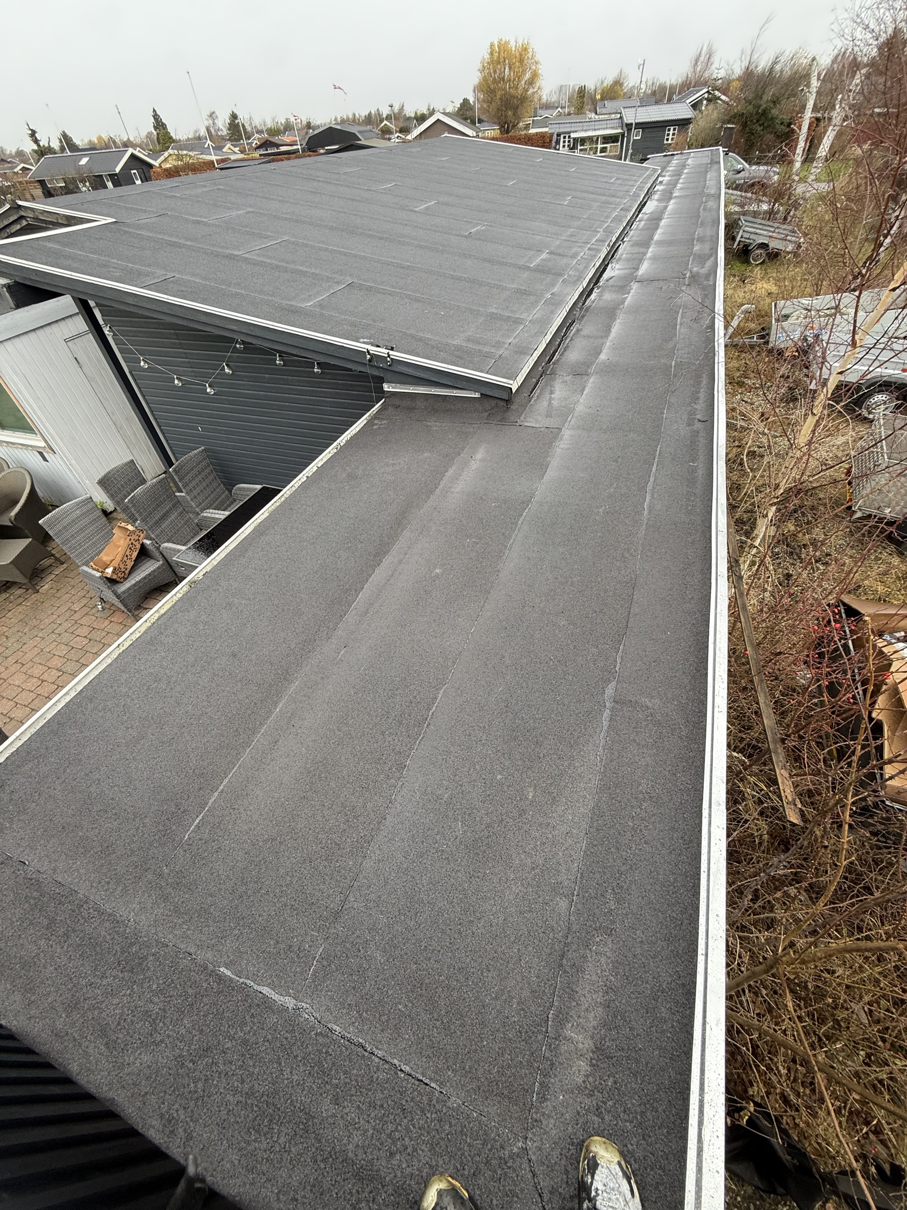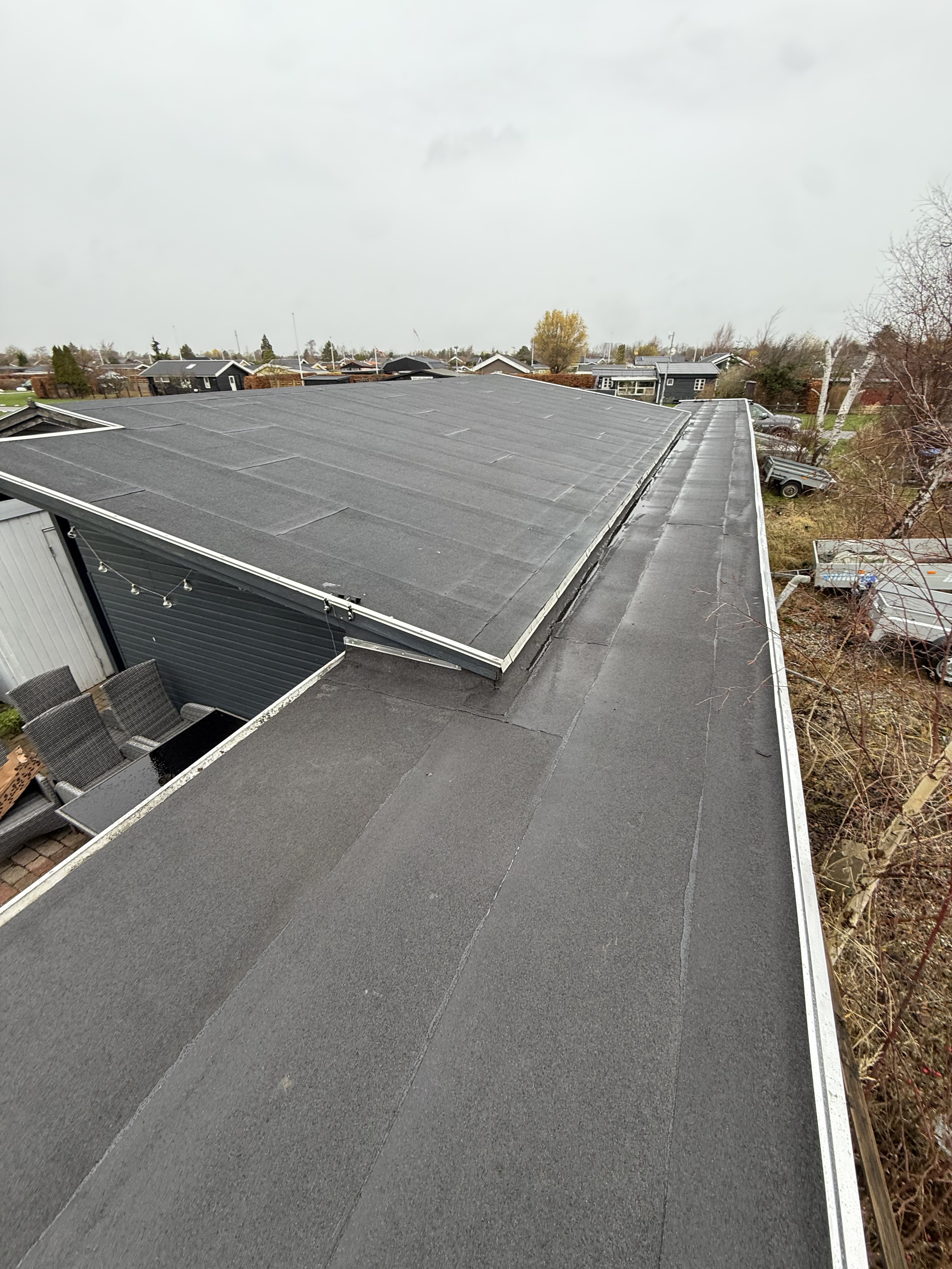 Delvis nedrivning af carport. Renovering af skur. Nyt tagpap og tagrender.