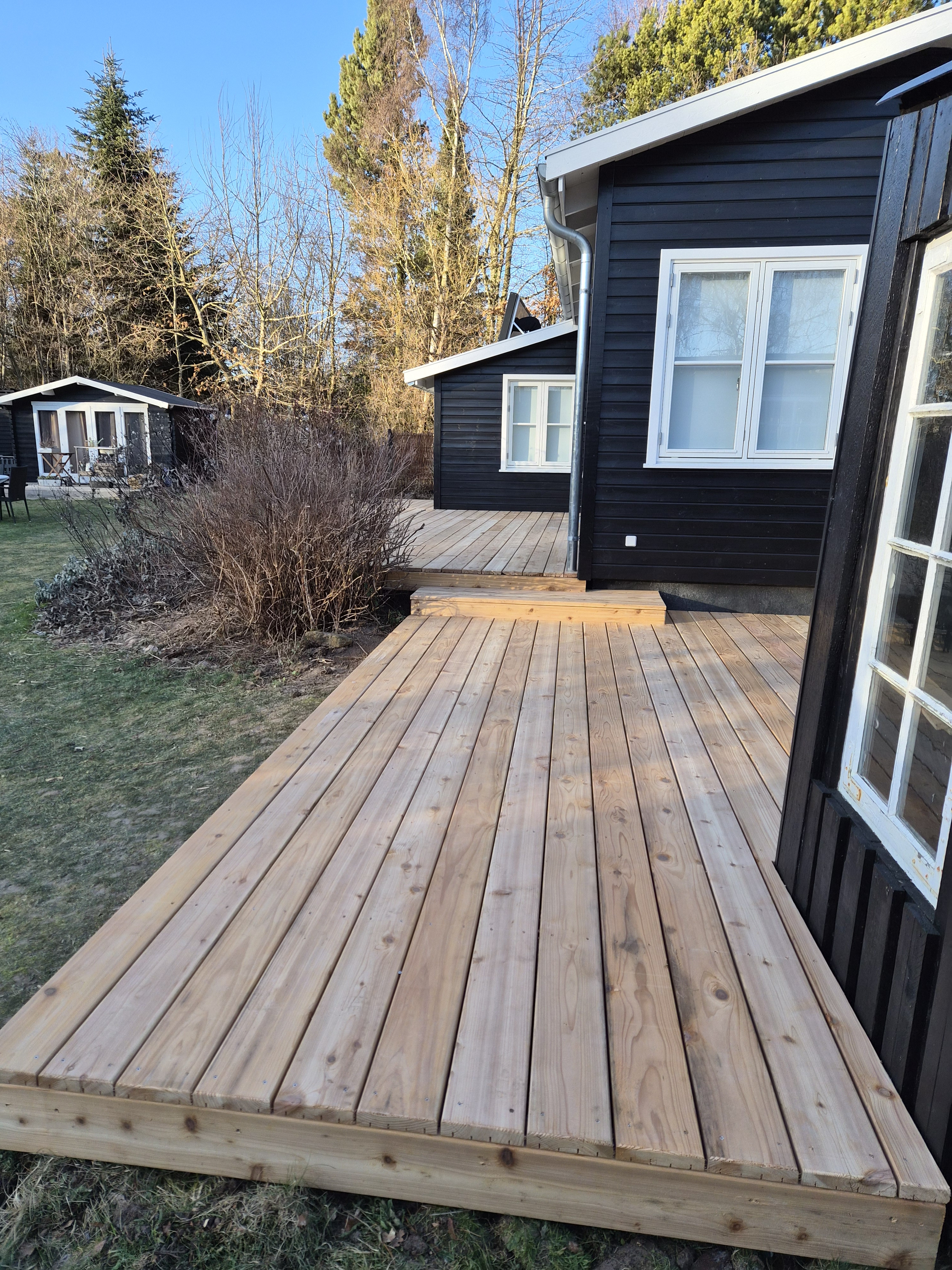 Vi har været meget glade for Tømrer Vetling hele vejen. De har leveret flotte terrasser og lavet gode løsninger til eksempelvis afvanding. Vi havde indkøbt brædderne for to år siden og det lykkedes dem at komme i mål med alle terrasseområderne med vores indkøbte brædder pga fint gennemtænkte løsninger.