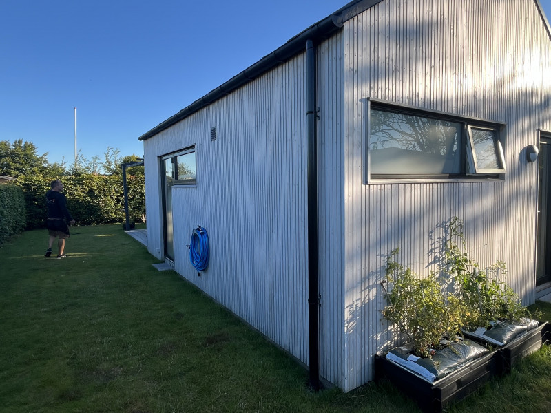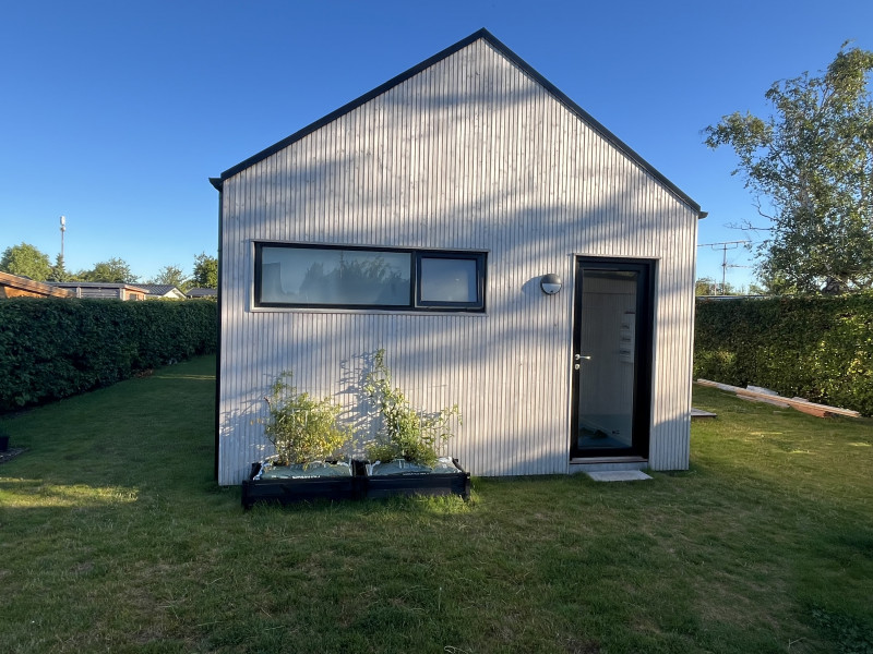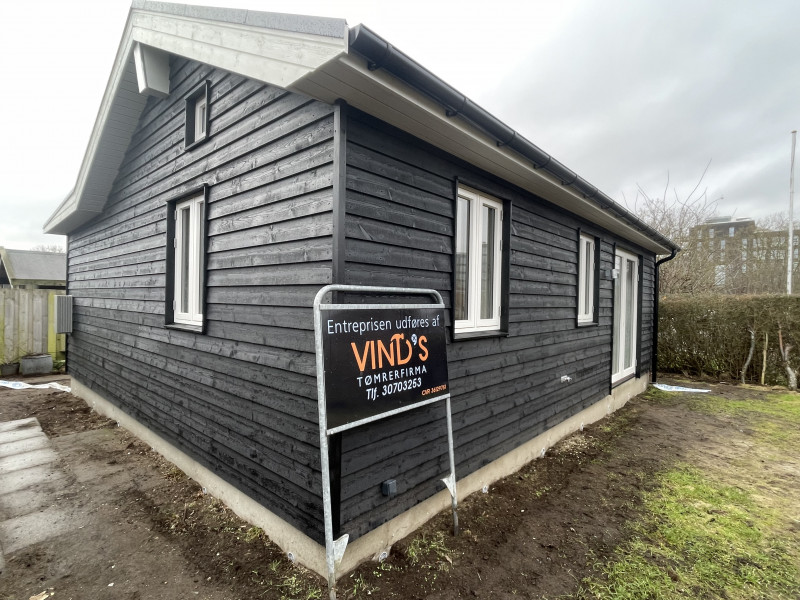 Vinds tømrerfirma stod som totalentrepenør både for nedrivning og bortskaffelse af det oprindelige kolonihavehus (ca. 25 kvm), og opførsel af et nyt træhus (ca. 42 kvm), med køkken, bad og toilet. Alt arbejde blev udført med høj håndværksmæssig standard og faglighed. Al kontakt med Vinds tømrerfirma, de ansatte og “eksterne” partnere til bl.a. el, vvs mm. foregik altid i en behagelig, konstruktiv og samarbejdsvillig tone, med stor vilje til at løse problemer til vores store tilfredshed. Alle delleverancer blev leveret til tiden og til prisen. Det har været en fornøjelse at arbejde sammen med Jacob Vind og ALLE folkene omkring ham. Vi giver Jacob Vinds tømrerfirma de bedste anbefalinger.