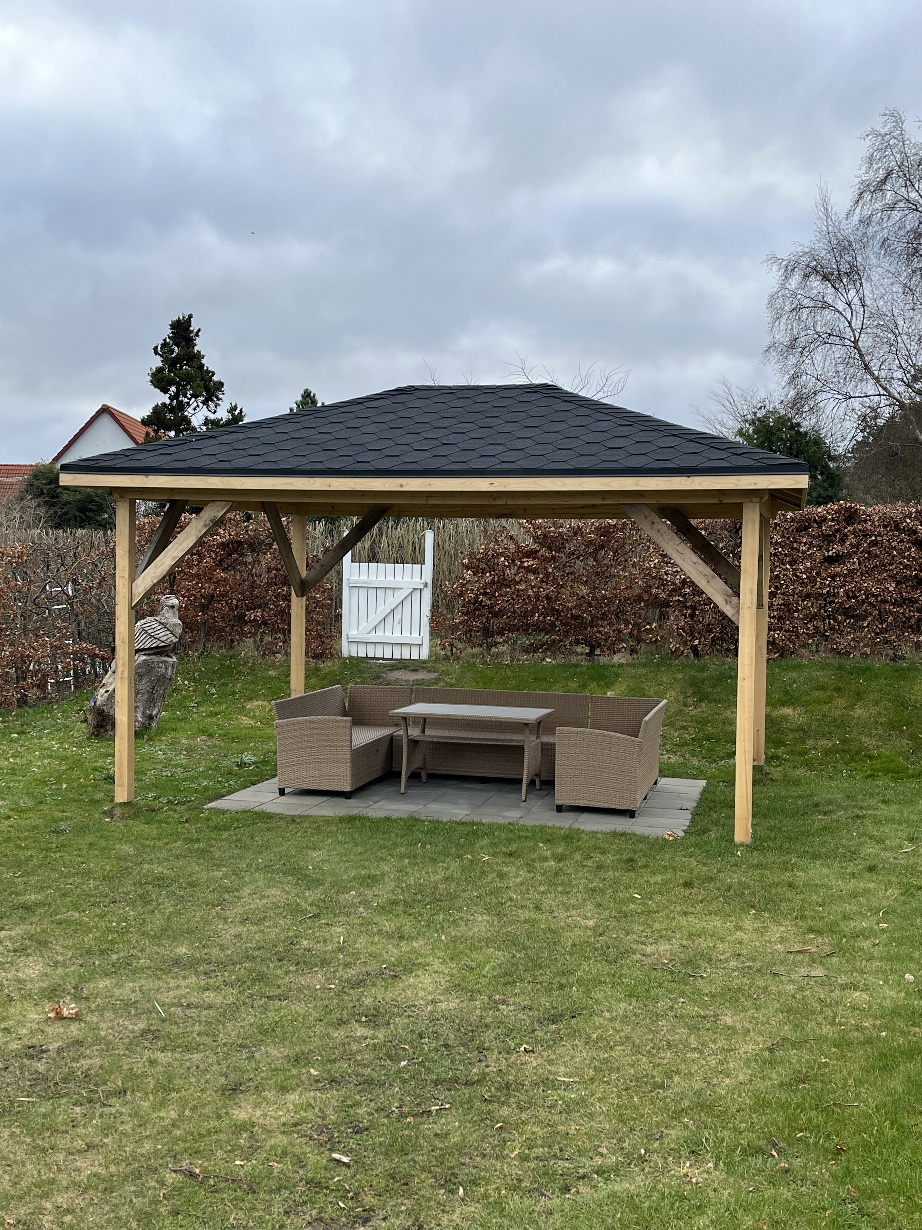 Vi sendte et billede af en pavillon vi havde set på nettet og så udfærdigede han en tegning med mål og nogle forbedringer ift billedet og prisen på tilbuddet blev overholdt til punkt og prikke. Opgaven blev udført hurtigt uden at gå på kompromis med kvaliteten. Det færdige resultat er helt fantastisk . Vi vil helt sikkert bruge firmaet igen.