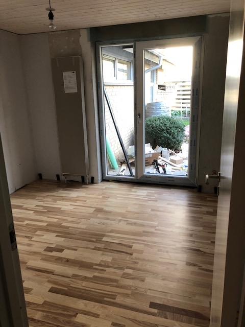 Lagt nyt gulv på strøer samt isat ny terrassedør. Arbejdet udført som aftalt og til aftalt tid.