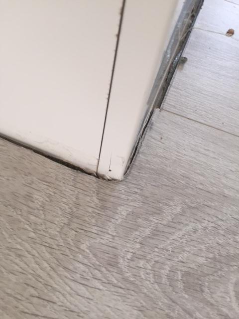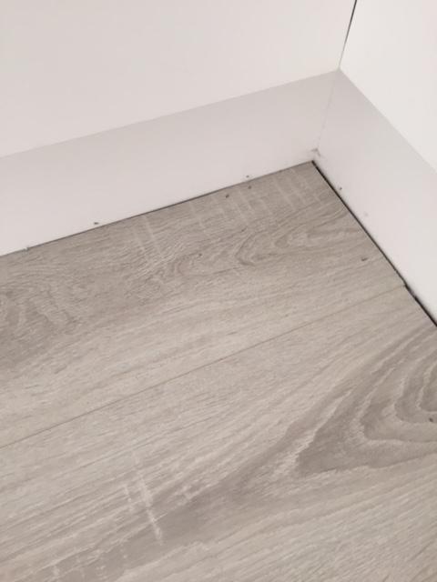 Gulvet blev lagt af tømrerfirmaet JJ Byg & Montage (fra Broby) i januar 2017, men allerede i juli 2017 begyndte problemerne at vise sig. Gulvpladerne blev ujævne og med buler flere steder. Det viste sig, at der ikke var sikret plads - eller meget lidt plads - til at gulvpladerne kunne udvide/bevæge sig, hvilket resulterede i at hele gulvet i stue/køkken skulle lægges om, og dele af pladerne skiftes ud. Denne "ekstra" opgave, blev af et gulvfirma beregnet til at koste små 18.000,00 kroner, et beløb som jeg naturligvis ville have JJ Byg & Montage til at betale, enten helt eller delvist.