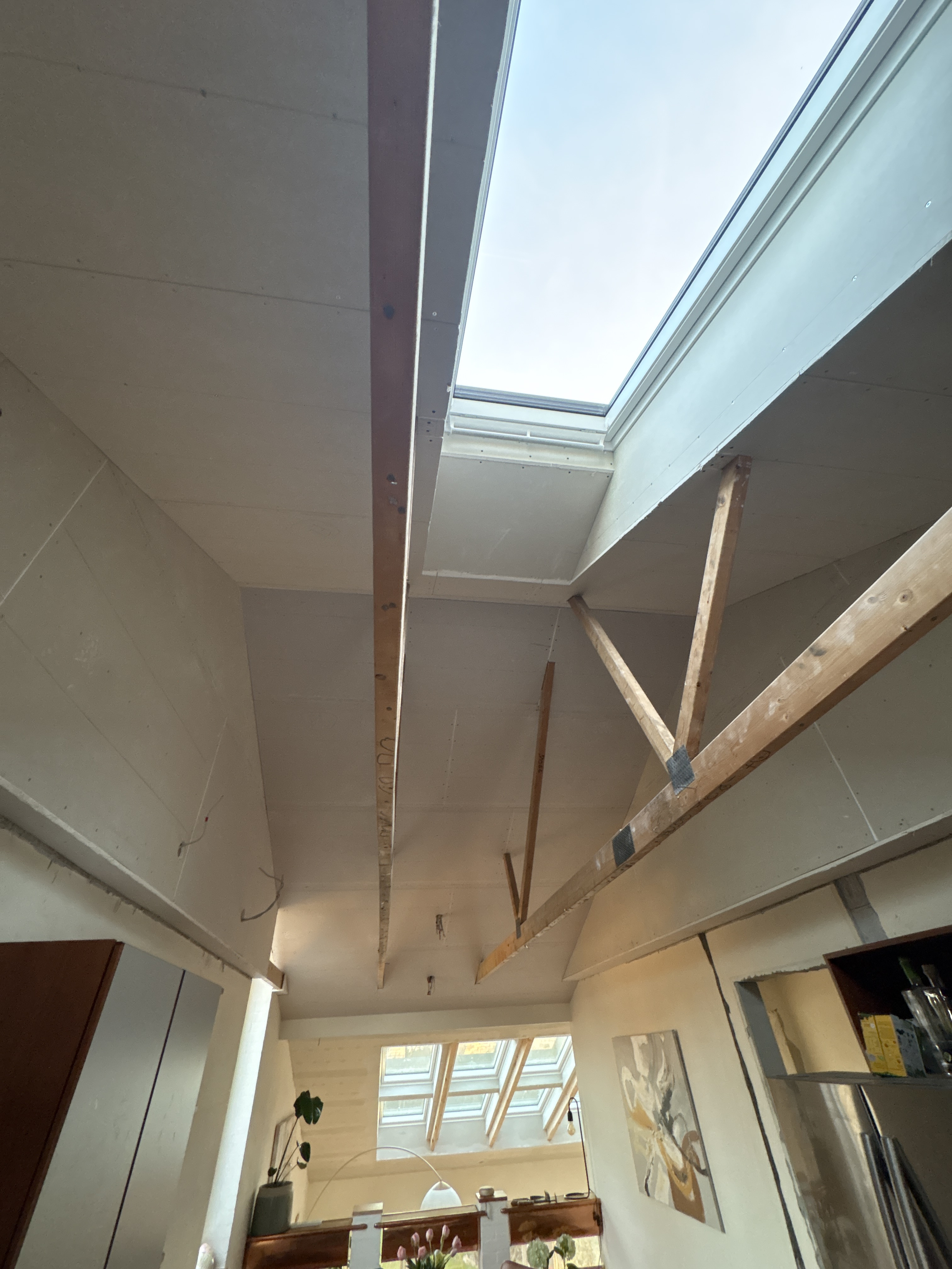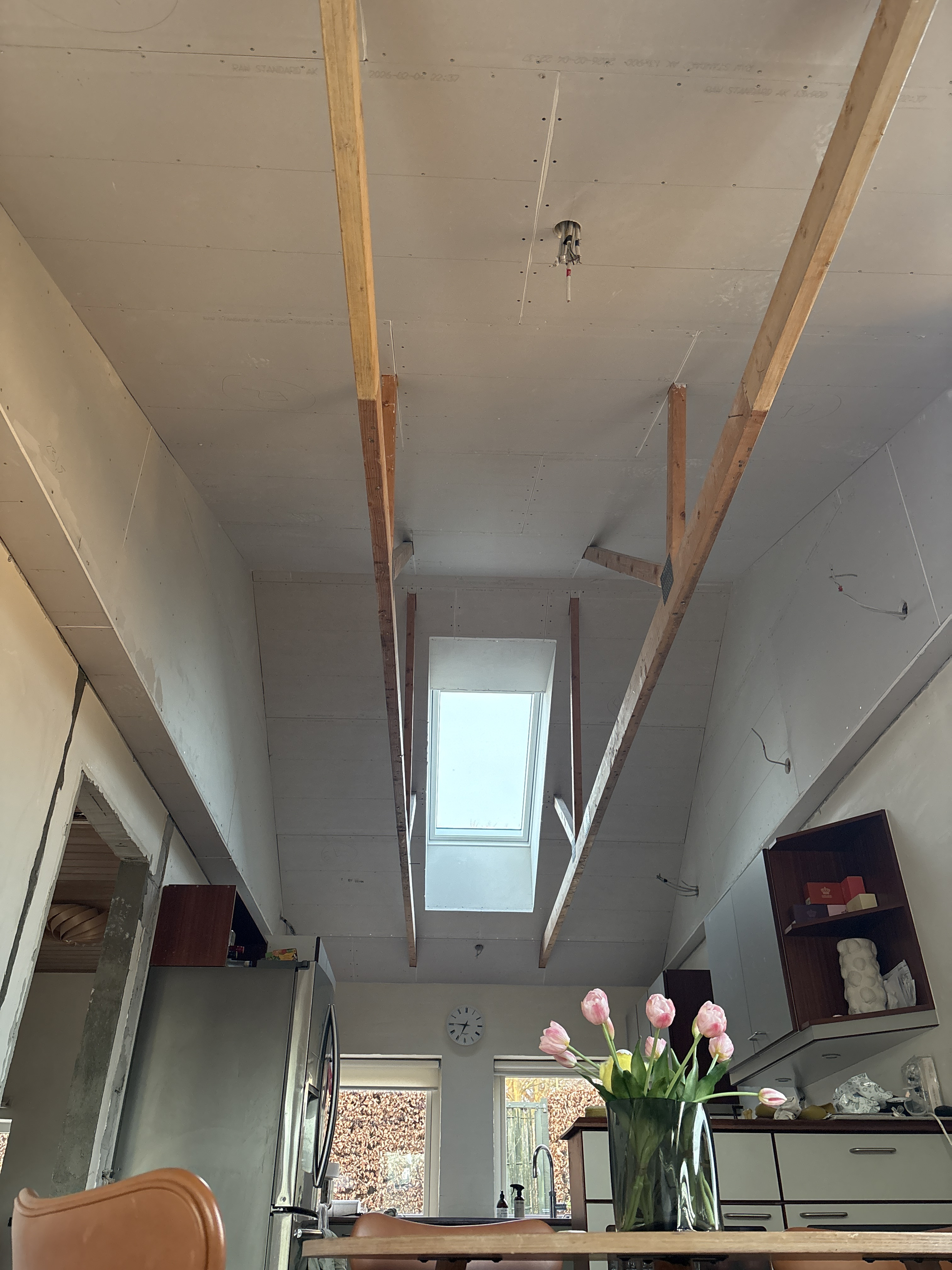 Denne gang har Klyverbyg stået for loft til kip i køkkenet, isolering, gips og isætning af et nyt ovenlysvindue, og igen har vi haft en rigtig god oplevelse. Arbejdet er udført flot og ordentligt, kommunikationen har været god hele vejen, og resultatet er blevet rigtig godt.