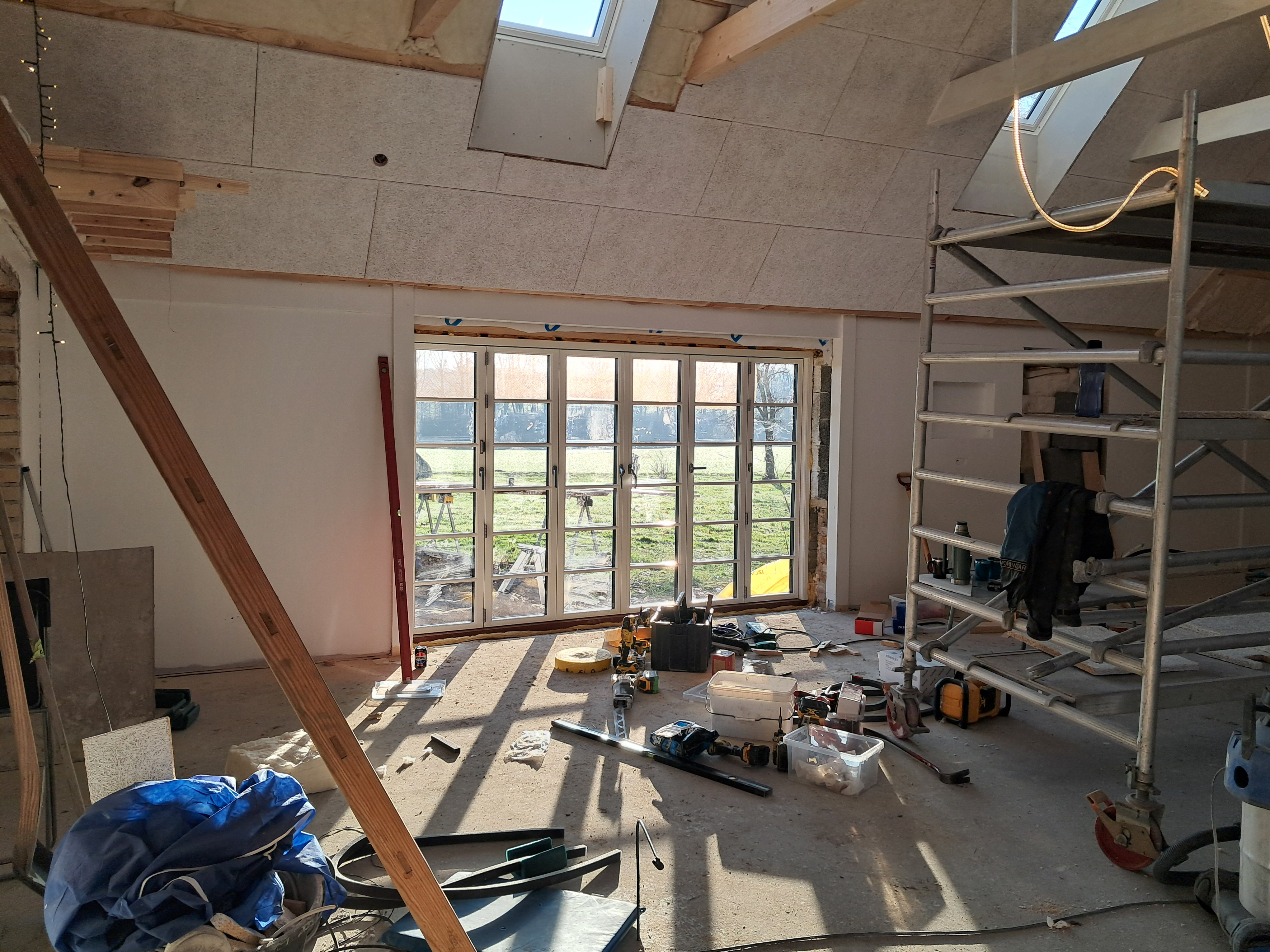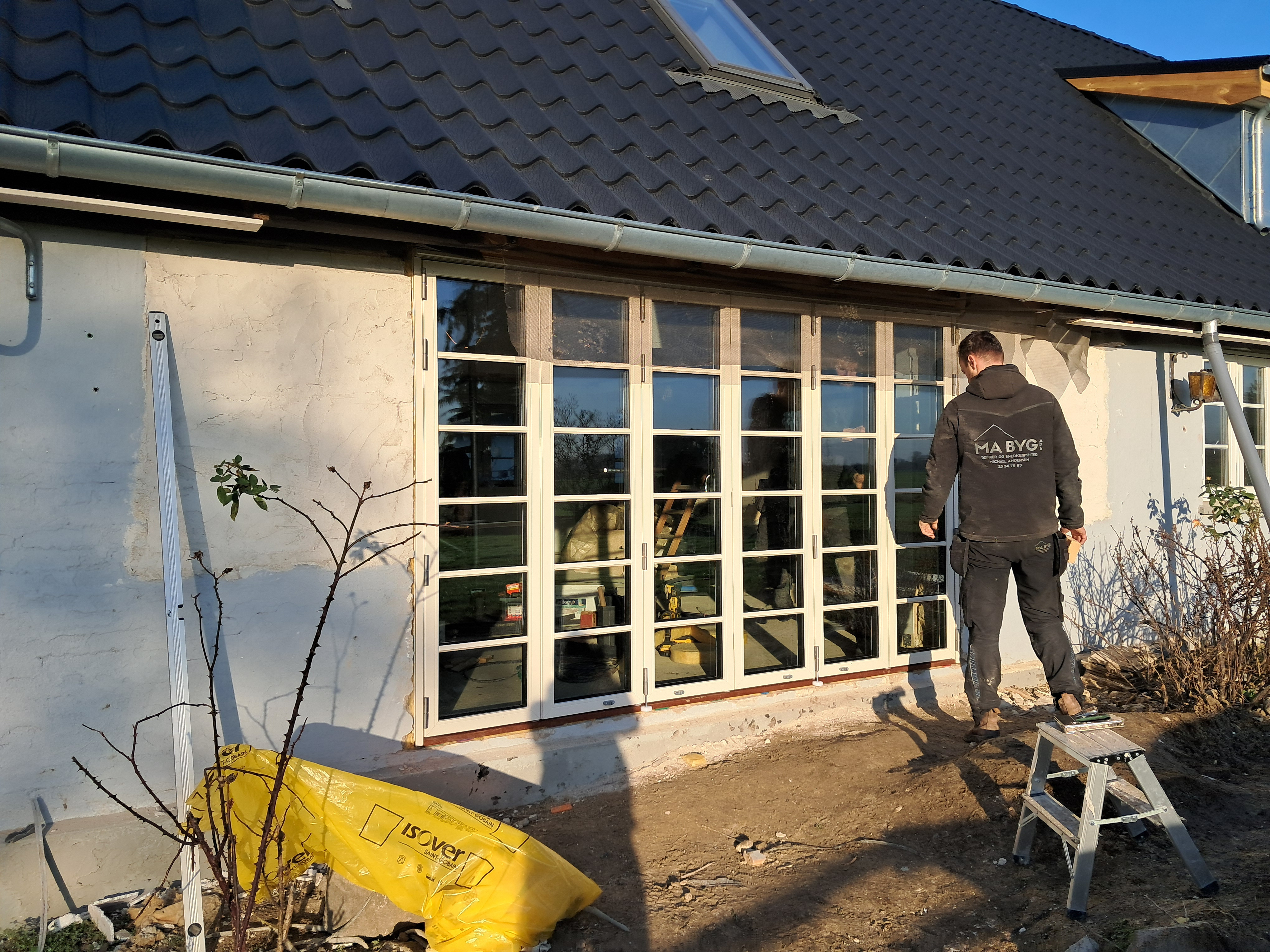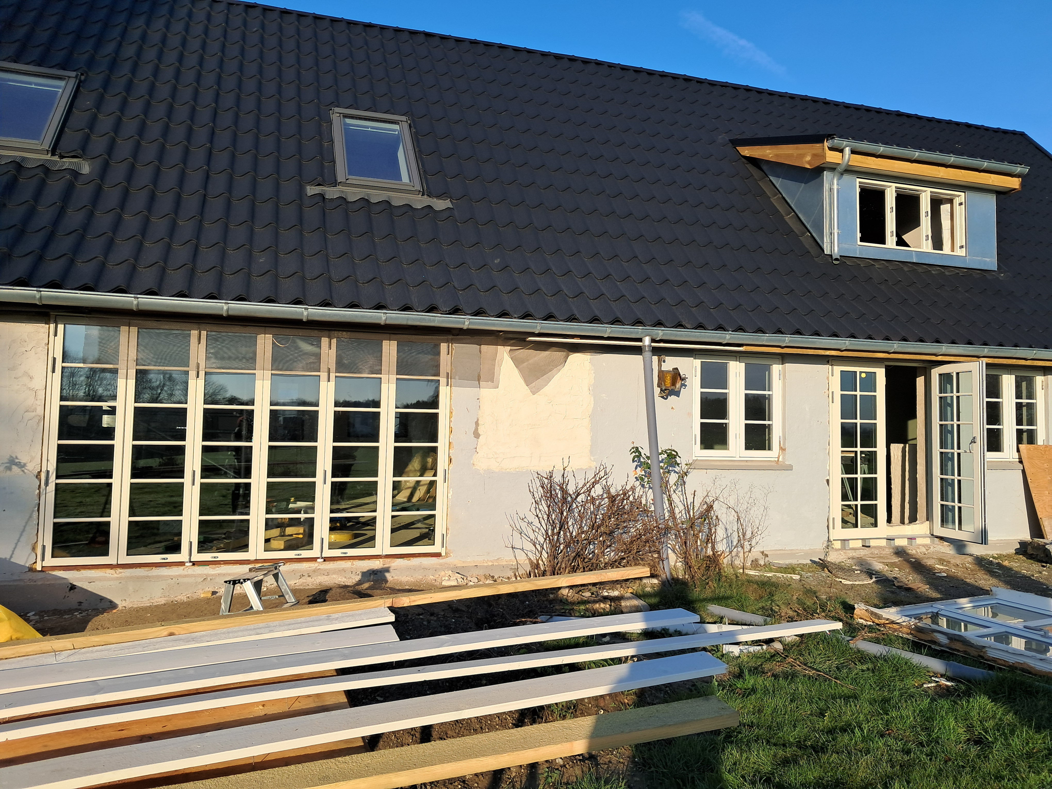 De har sat 3 stk nye velux vinduer i. Montering af terrasse dør.