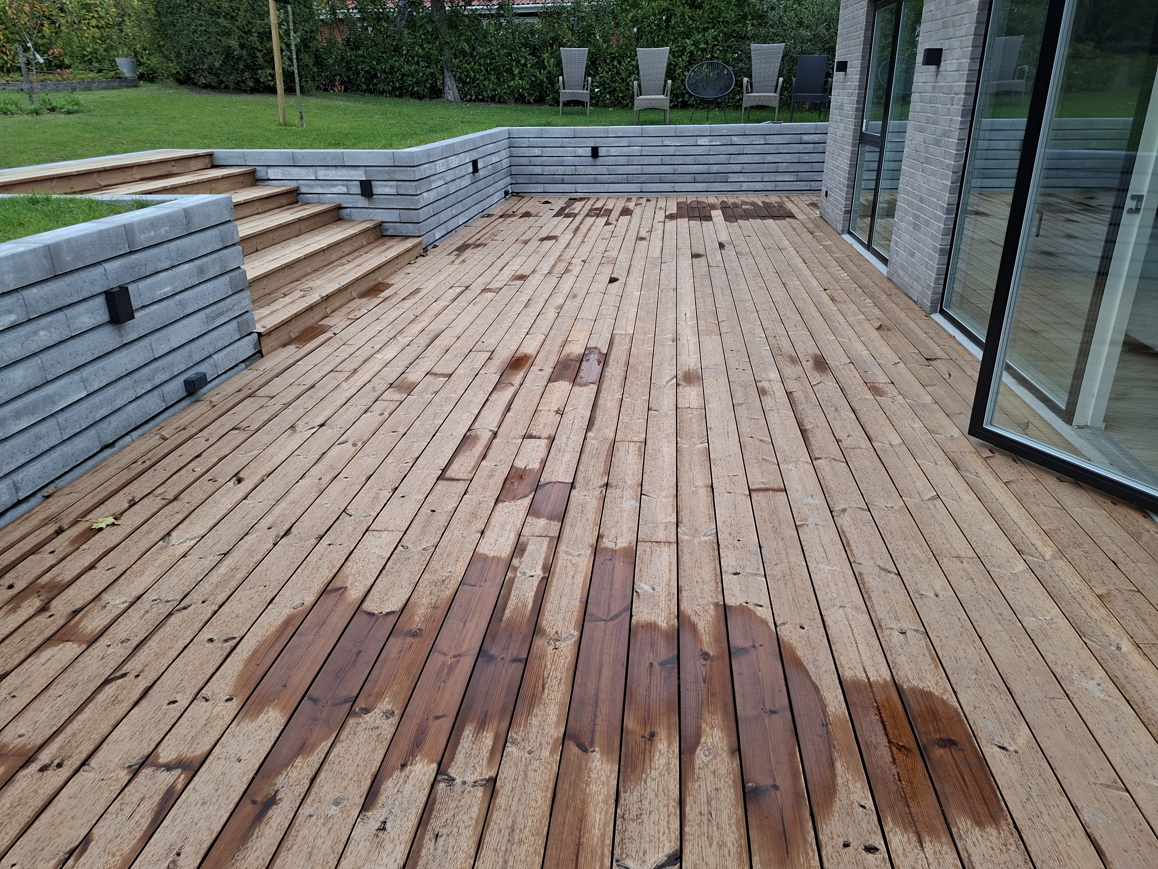 De dygtige tømrere skabte den perfekte træterrasse og trappe, med deres grundige og kvalitetsbevidste håndværk.