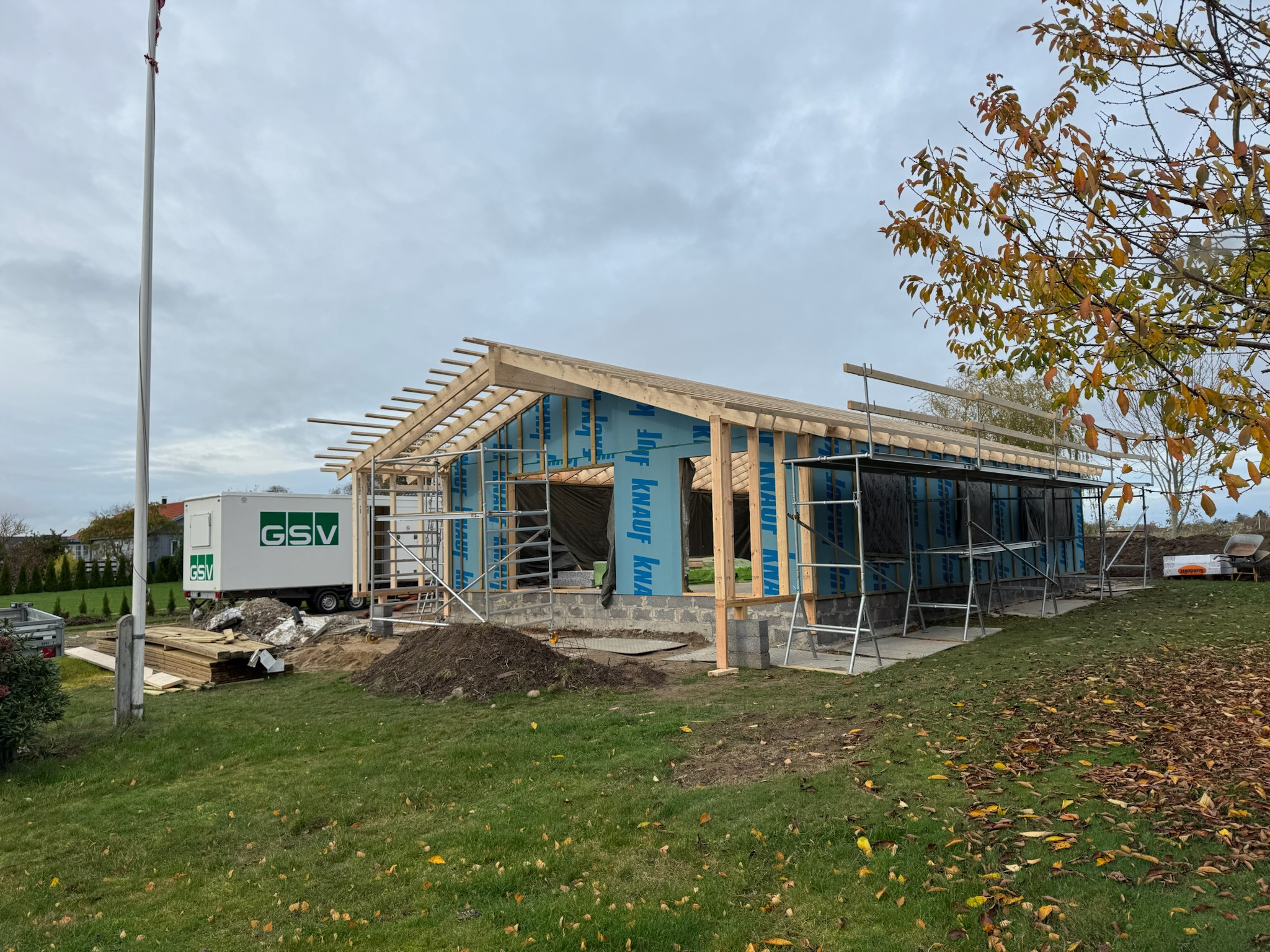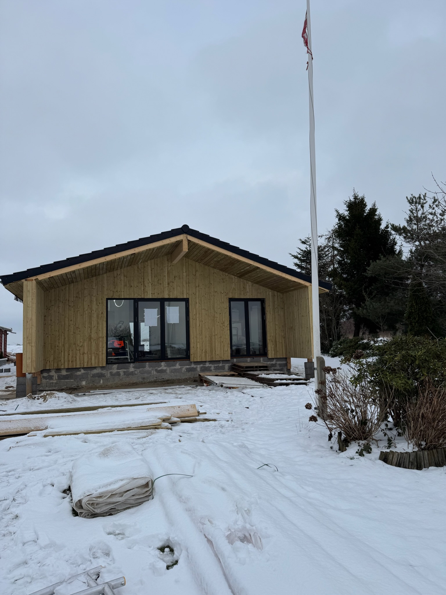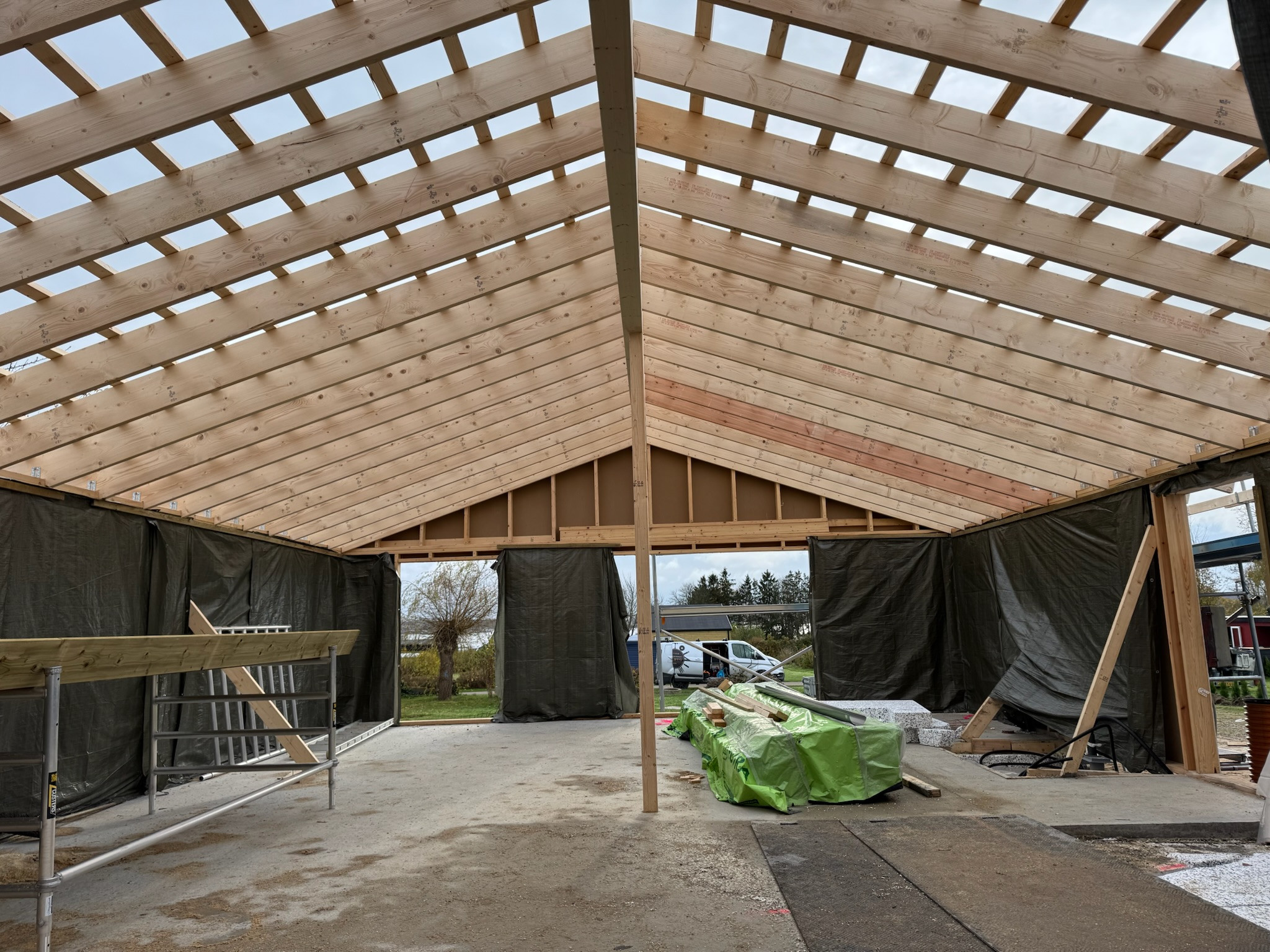 Har fået lavet nyt tag. At det ikke går hurtigere er min skyld. Tømrerne arbejder upåklageligt og alt har spillet indtil videre. Vi kommer også til at bruge dem til et nybyg-projekt.