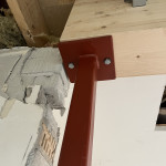 Udskiftning af en del af den planke, der dels ligger ovenpå altanmuren og dels understøtter en af de 4 stolper, der bærer taget over altanen.