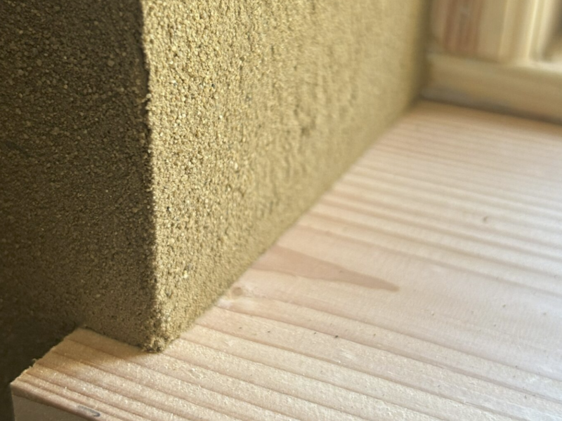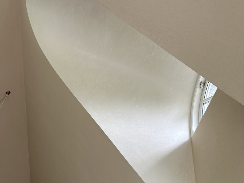 Lerpuds, både indvendigt og udvendigt, udført med præcision i struktur, lagtykkelse og finish