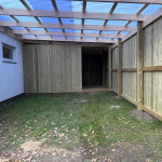 Ude har Casper isoleret skur, lavet skraldebøtteskjul, overdækket terrasse, slebet og olieret gammelt træterrasse, udskiftet døre og vinduer.