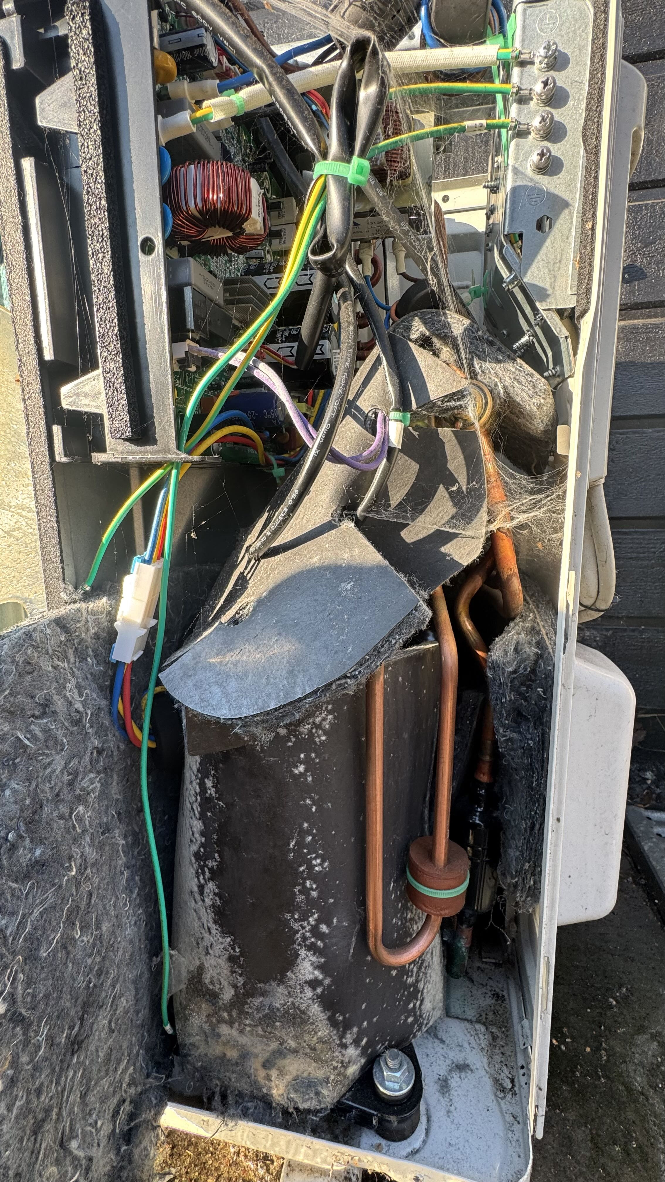 Det var en fornøjelse at hjælpe jer! Under servicen fik vi udskiftet isoleringen på kølerørene, som desværre var blevet ødelagt af skadedyr. Samtidig fik vi lukket de huller i muren, som det tidligere firma havde efterladt – så nu er både varmepumpe og væg sikret ordentligt.