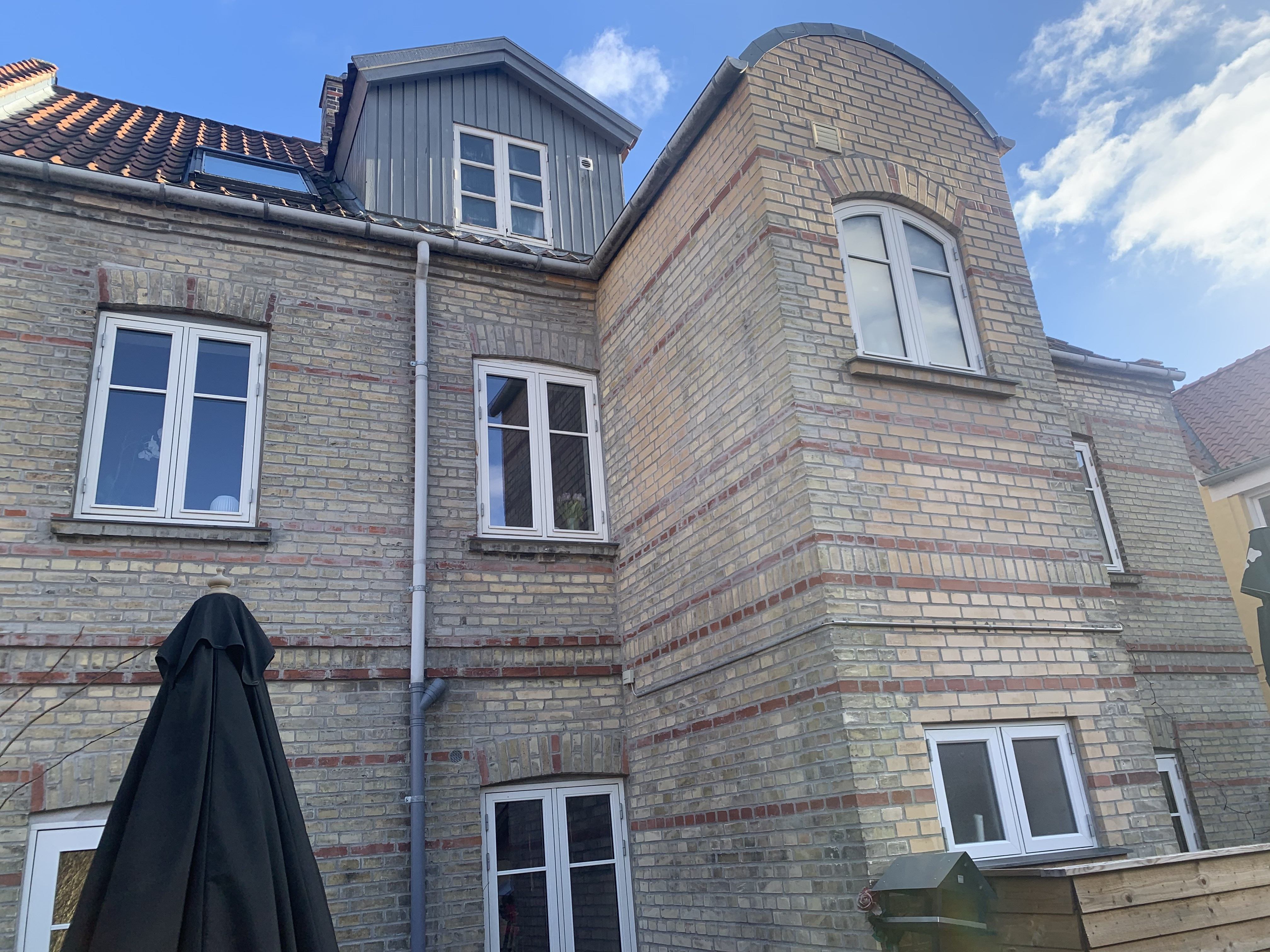Fast aftale med rensning af tagrender årligt. Får sms om at de kommer og de klarer opgaven selv.