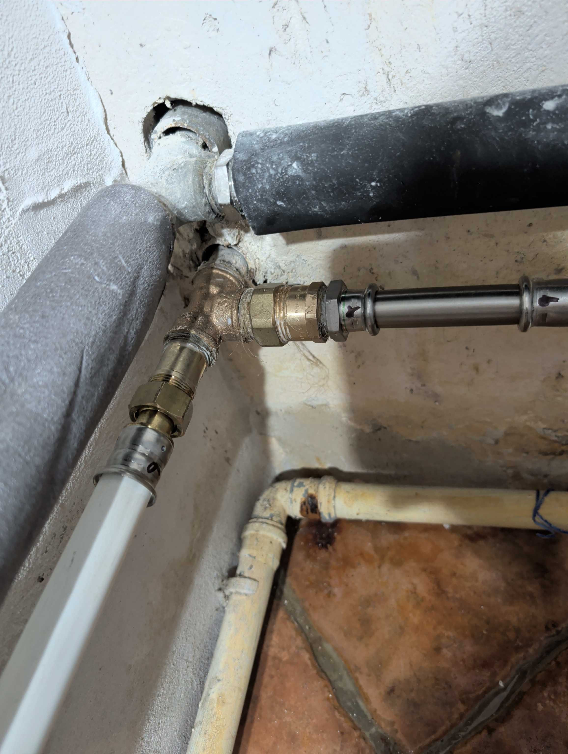 Da han var færdig med udskiftning af varmeveksleren, åbnede han for vandet igen. Og han sikrede, at hele installationen var tæt efter udskiftning.