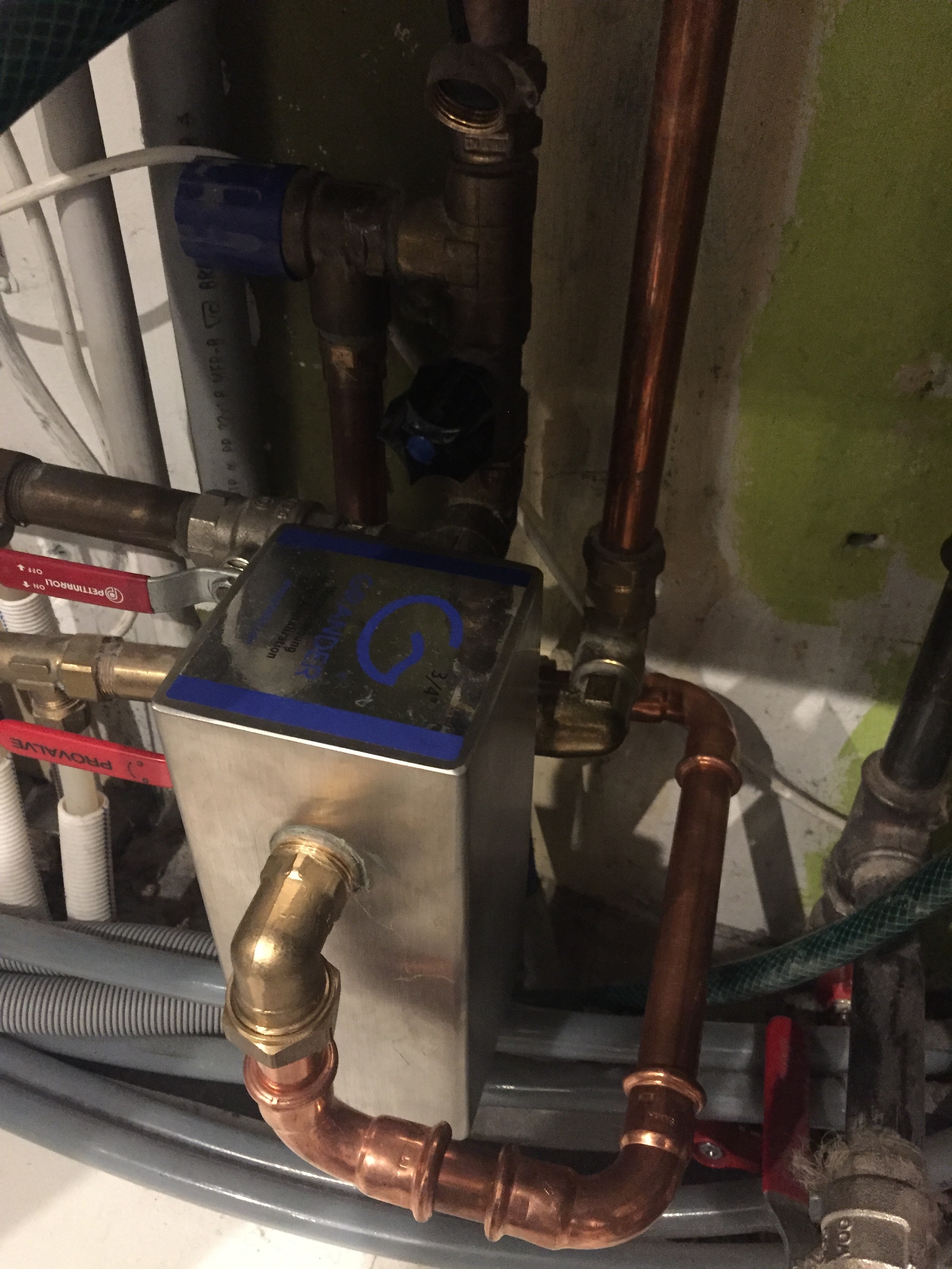 Bor i etage ejendom og havde problemer med vand tilførelse af vand i badeværelse til vaske maskine. Fejl lå i blokering i ballofix ved indgang til badeværelse, håndværker konstruktiv i dialog, herunder til teknik rum etc.