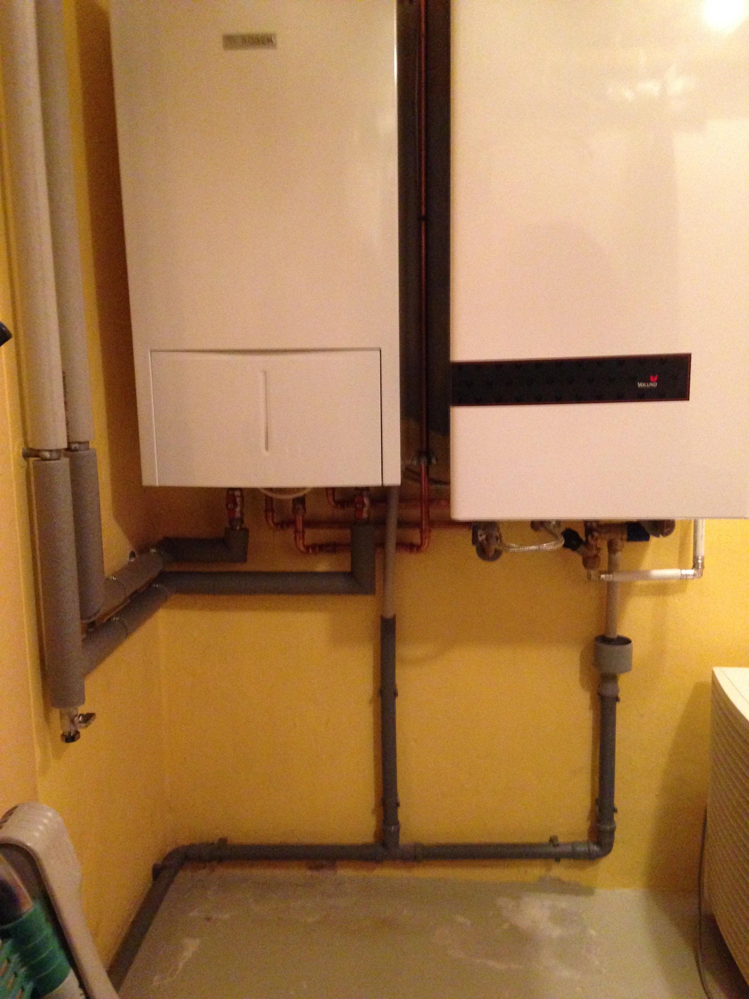 VVS´eren fra Fuglsang VVS ankom kl. 8:00 og forlod adressen 4 timer senere - uden at man næsten kunne se, at det gamle fyr var nedtaget og nyt kondenserende Bosch gasfyr opsat, forbindelsesrør ned til gulvvarmen omlagt så det passede til det nye fyr via et flot arbejde udført med kobberrør. Et flot stykke arbejde!