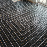 Ved den radiator hvor rørene er tilsluttet i samme ende laves der rørføring under radiatoren så den bliver